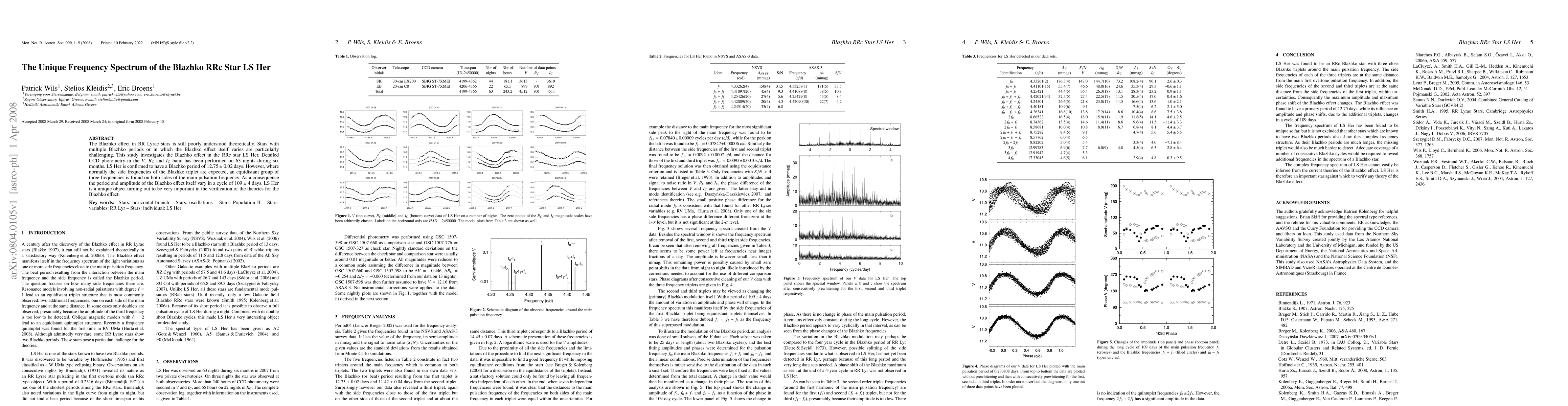 This study investigates the Blazhko effect in the RRc star LS Her, revealing a unique frequency spectrum with equidistant side frequencies on both sides of the main pulsation frequency. The Blazhko period varies in a cycle of 109 days, making LS Her a significant case for verifying theoretical models of the Blazhko effect.
