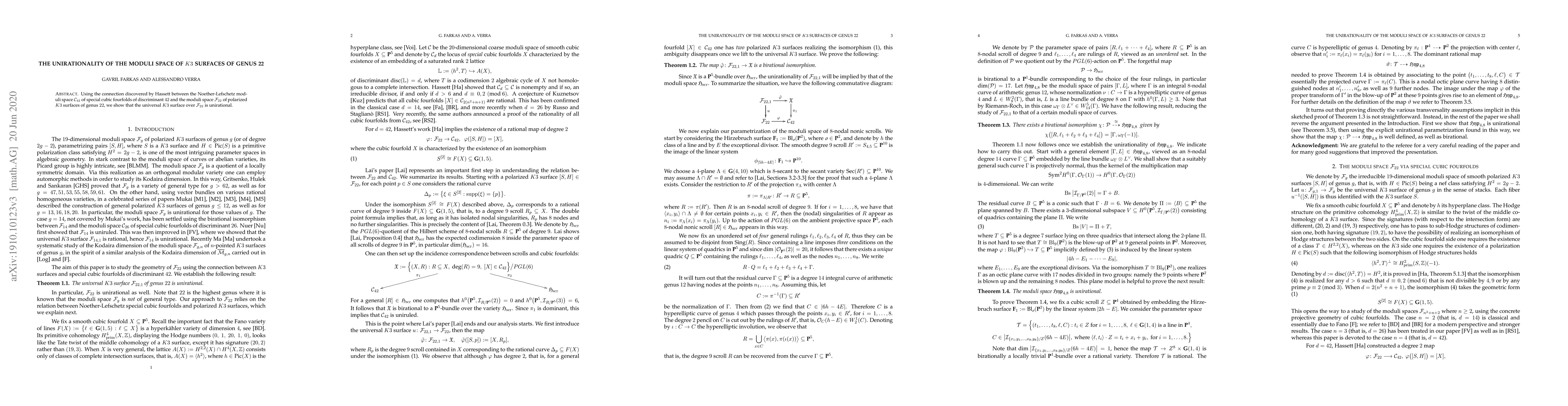 Summary: The paper establishes the unirationality of the moduli space F_{22} for polarized K3 surfaces of genus 22 by leveraging Hassett's connection between this space and the moduli space of special cubic fourfolds of discriminant 42. This result supports the broader understanding of the structure of K3 surfaces.