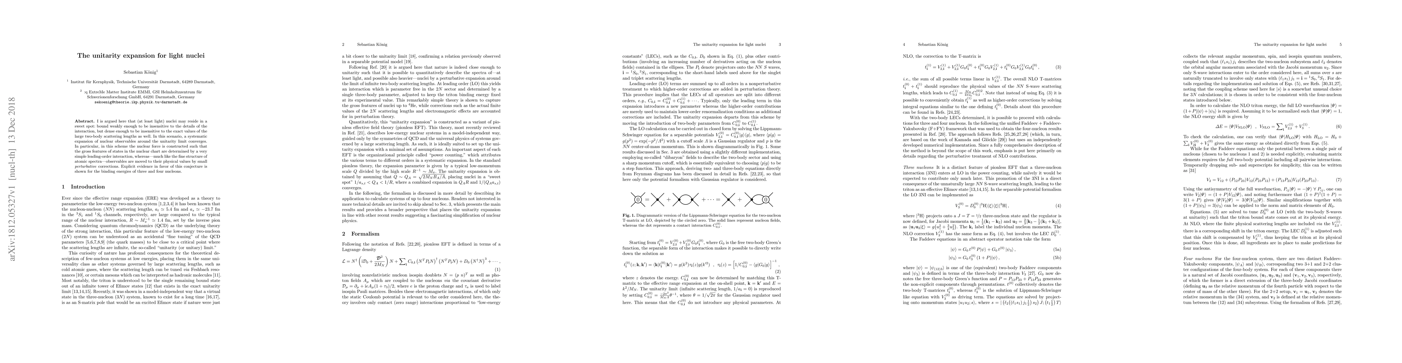I is argued here that (at least light) nuclei may reside in a sweet spot: bound weakly enough to be insensitive to the details of the interaction, but dense enough to be insensitive to the exact values of the large two-body scattering lengths as well. In this scenario, a systematic expansion of nuclear observables around the unitarity limit converges. In particular, in this scheme the nuclear force is constructed such that the gross features of states in the nuclear chart are determined by a very simple leading-order interaction, whereas---much like the fine structure of atomic spectra---observables are moved to their physical values by small perturbative corrections. Explicit evidence in favor of this conjecture is shown for the binding energies of three and four nucleons.