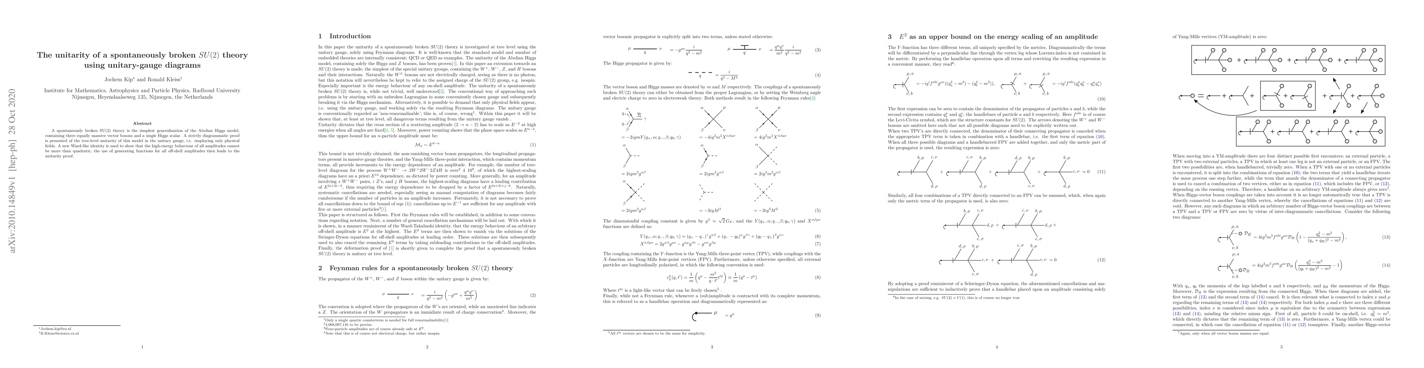 This paper presents a strictly diagrammatic proof of tree-level unitarity in a spontaneously broken SU(2) theory using unitary-gauge diagrams, employing only physical fields. A new Ward-like identity and generating functions for off-shell amplitudes are used to demonstrate that the high-energy behavior of all amplitudes is quadratic, ensuring unitarity.