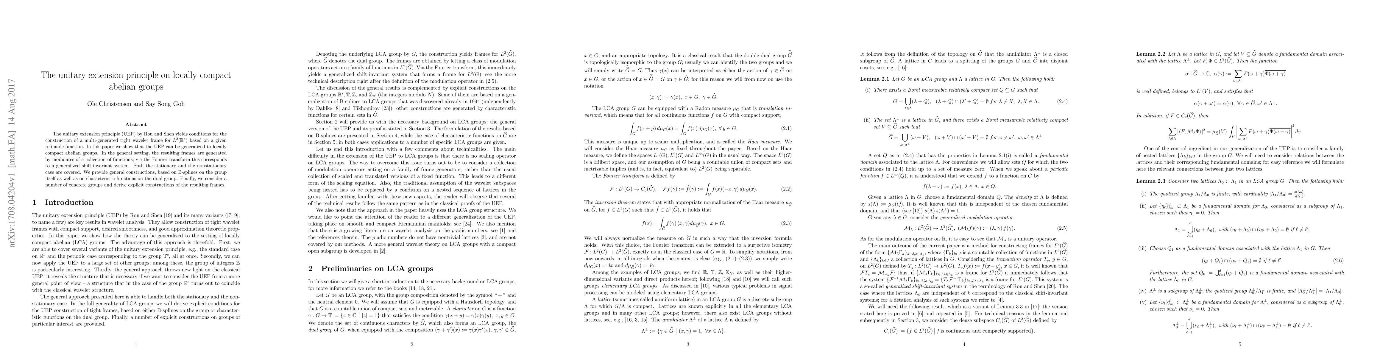 This paper generalizes the unitary extension principle to locally compact abelian groups, enabling the construction of frames on $L^2( ext{G})$ spaces, with applications in signal processing and harmonic analysis.