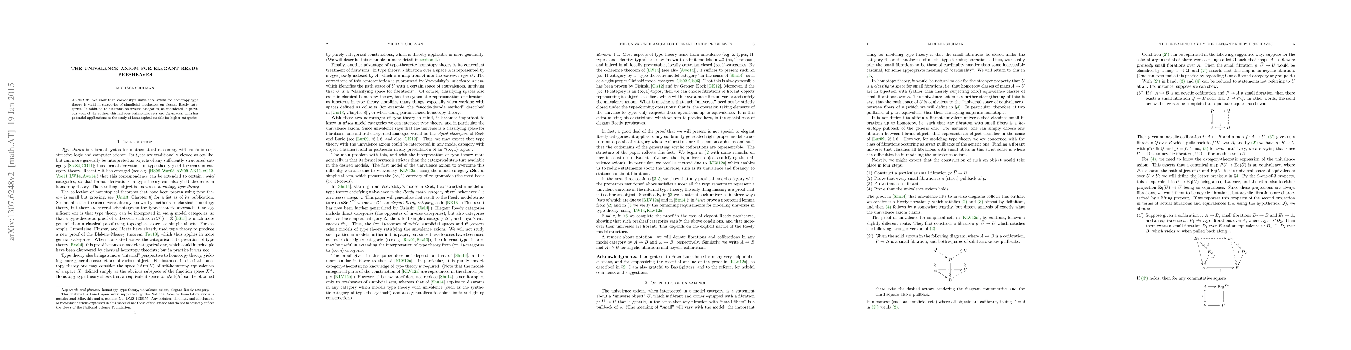 The paper demonstrates the validity of Voevodsky's univalence axiom in categories of simplicial presheaves on elegant Reedy categories, extending previous work to include bisimplicial sets and $\Theta_n$-spaces, with implications for higher category theory.