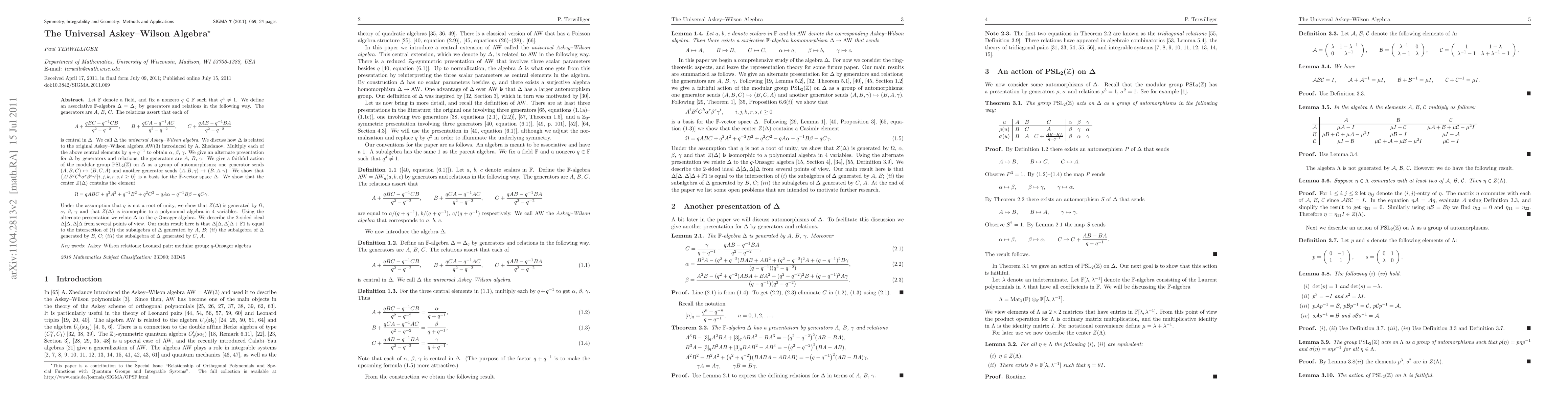 This paper introduces the universal Askey-Wilson algebra, a central extension of the Askey-Wilson algebra, and describes its action under the modular group. It provides a linear basis, details the center and a 2-sided ideal, and explores its relationship with the $q$-Onsager algebra.