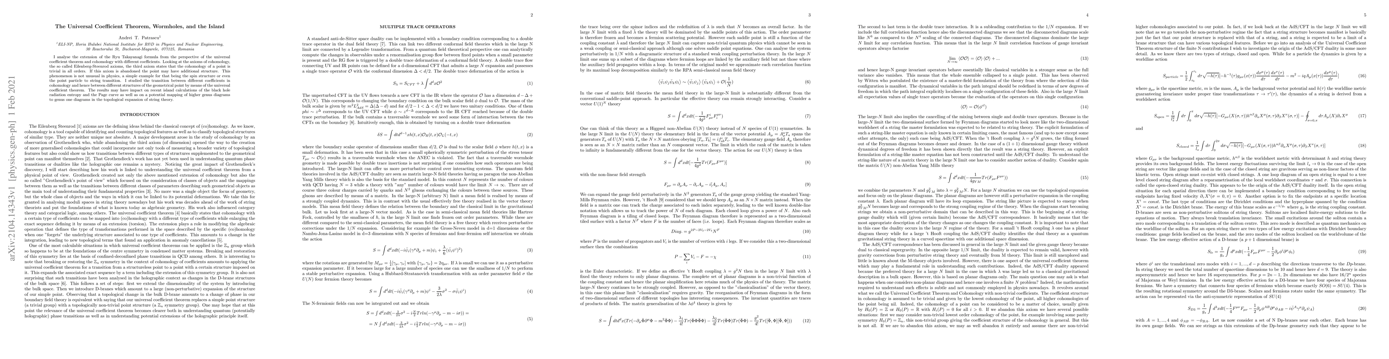 Researchers explored the connection between the Universal Coefficient Theorem, wormholes, and a concept called the 'Island' in physics, potentially revealing new insights into black hole radiation entropy and string theory.