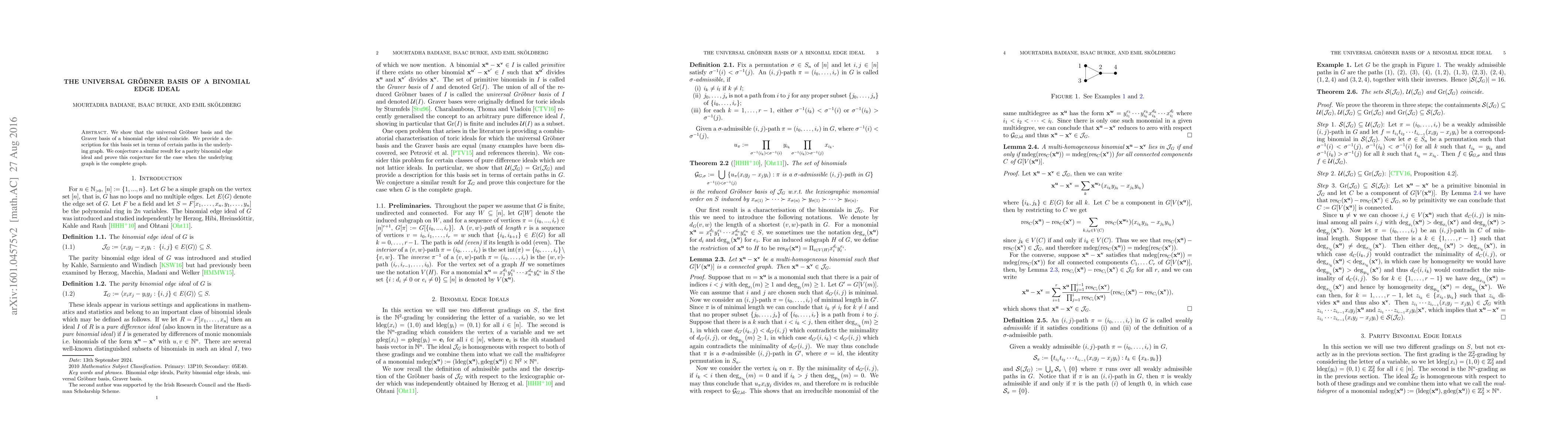 This paper demonstrates that the universal Gröbner basis and the Graver basis of a binomial edge ideal are identical, described via specific paths in the graph. It also proves a conjecture for a parity binomial edge ideal when the graph is complete.