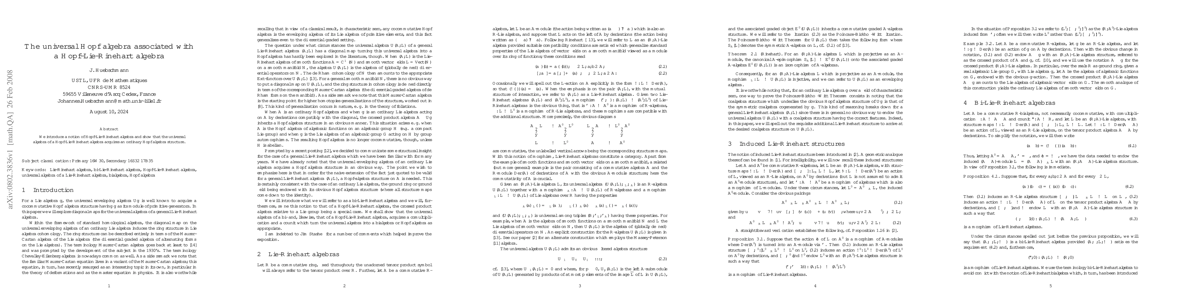 Summary: This paper introduces Hopf-Lie-Rinehart algebras and demonstrates that the associated universal algebra can be endowed with an ordinary Hopf algebra structure, extending the framework for such algebraic structures.