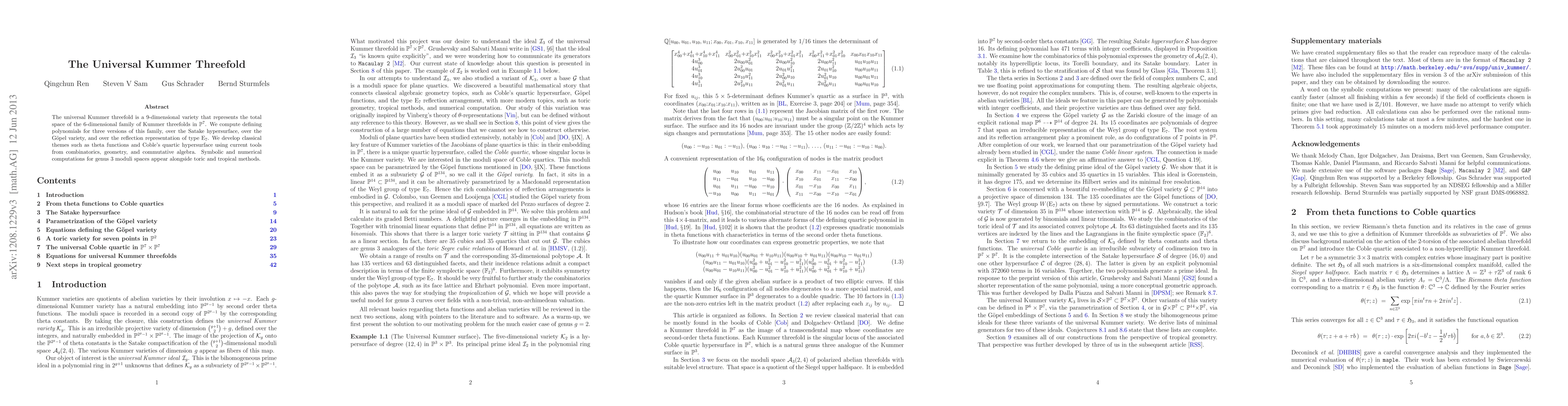 The universal Kummer threefold is a 9-dimensional variety representing a 6-dimensional family of Kummer threefolds. The paper computes defining polynomials for three versions of this family and employs classical themes and modern computational tools from combinatorics, geometry, and algebra.