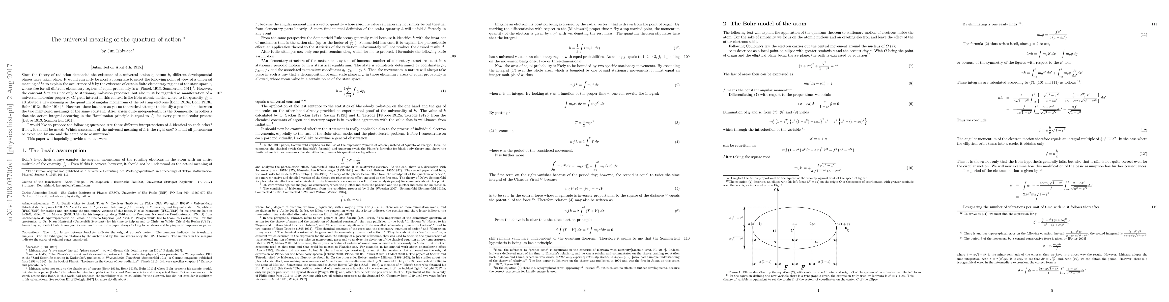 Commented translation of the paper "Universelle Bedeutung des Wirkungsquantums", published by Jun Ishiwara in German in the Proceedings of Tokyo Mathematico-Physical Society 8 106-116 (1915). In his work, Ishiwara, tenured at Sendai University, Japan, proposed - simultaneously with Arnold Sommerfeld, William Wilson and Niels Bohr in Europe - the pase-space-integral quantization, a rule that would be incorporated into the old-quantum-mechanics formalism.