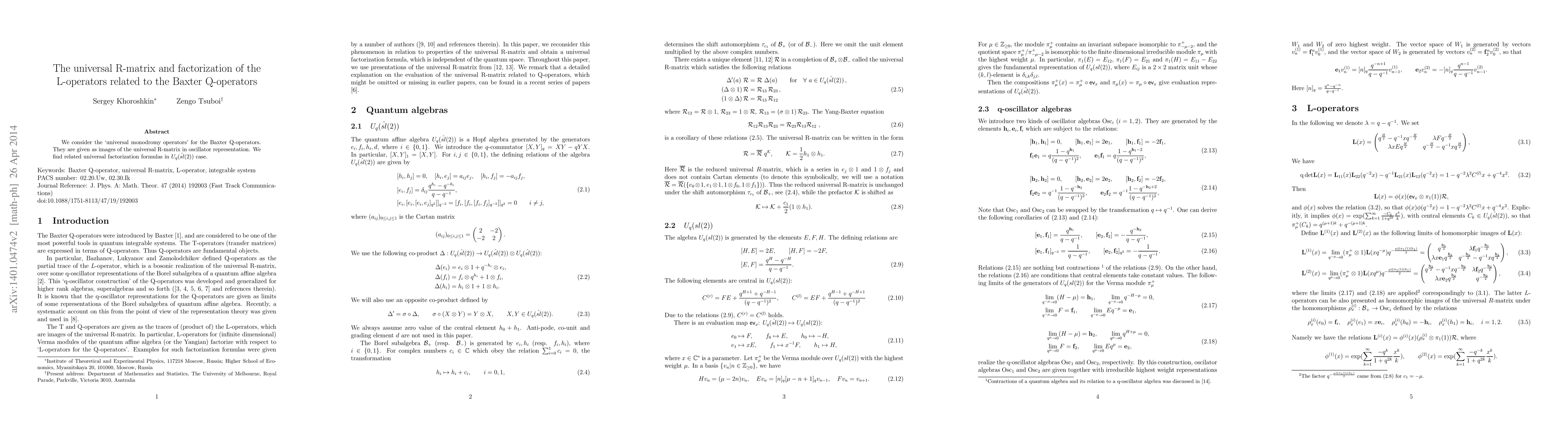 Summary: This paper explores the universal monodrimy operators derived from the universal R-matrix in the context of Baxter Q-operators, revealing factorization formulas in the $U_{q}(\hat{sl}(2))$ algebra. The findings provide insights into the structure of these operators.