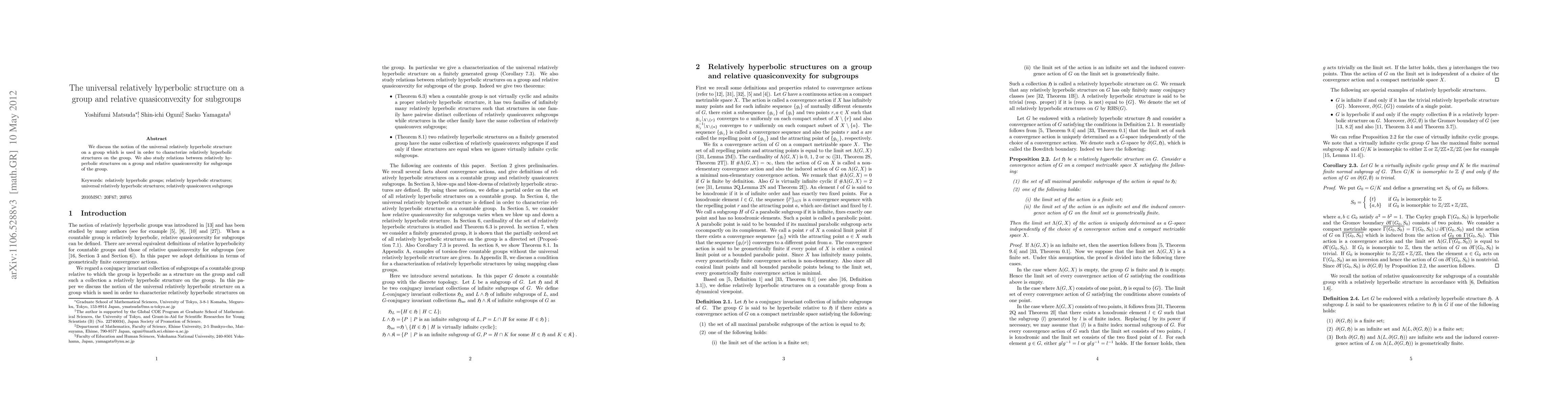 Summary: This paper explores the universal relatively hyperbolic structure on a group to characterize its hyperbolic structures and investigates the connection between these structures and the relative quasiconvexity of its subgroups.