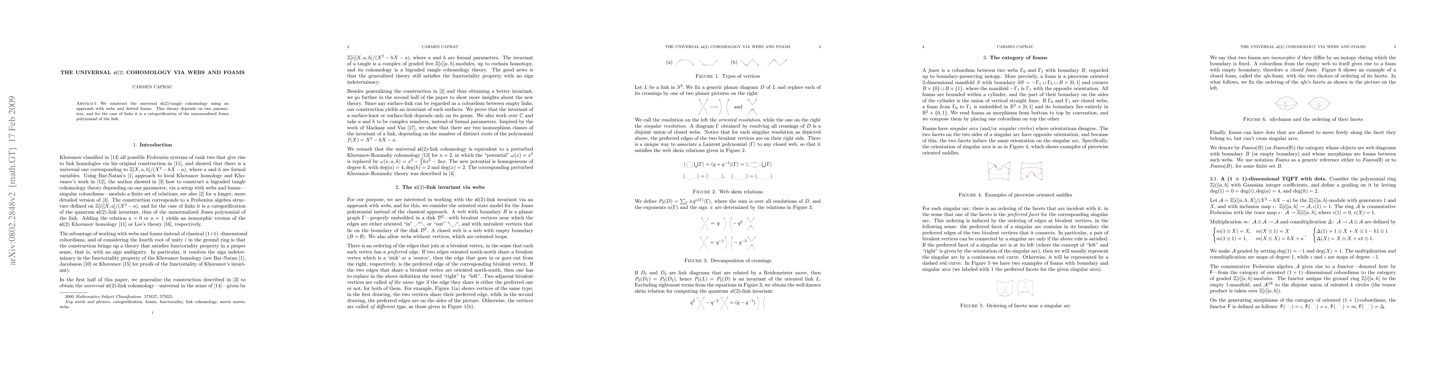 The paper introduces a universal sl(2)-tangle cohomology constructed using webs and dotted foams, providing a categorification of the unnormalized Jones polynomial for links, dependent on two parameters.