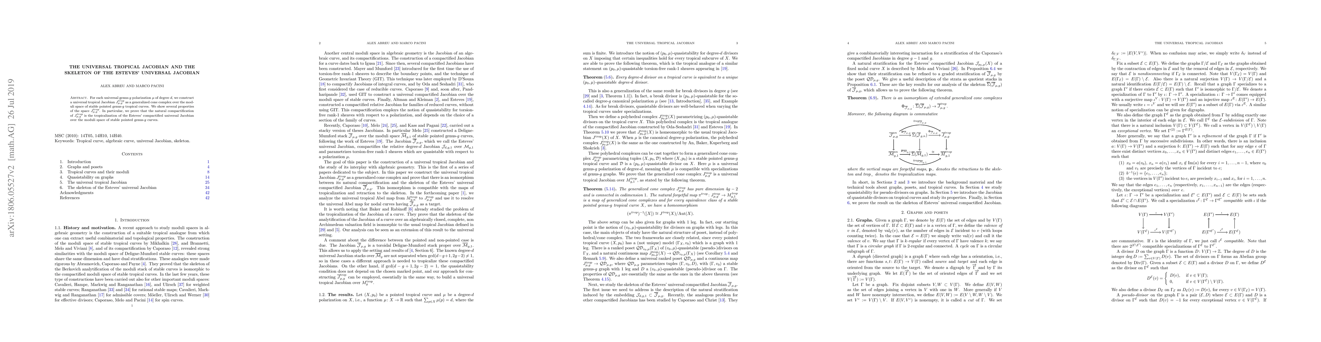 This paper constructs a universal tropical Jacobian $J_{\mu,g}^{trop}$ associated with a universal genus-$g$ polarization, demonstrating its properties and showing that its compactification is the tropicalization of Esteves' universal Jacobian.