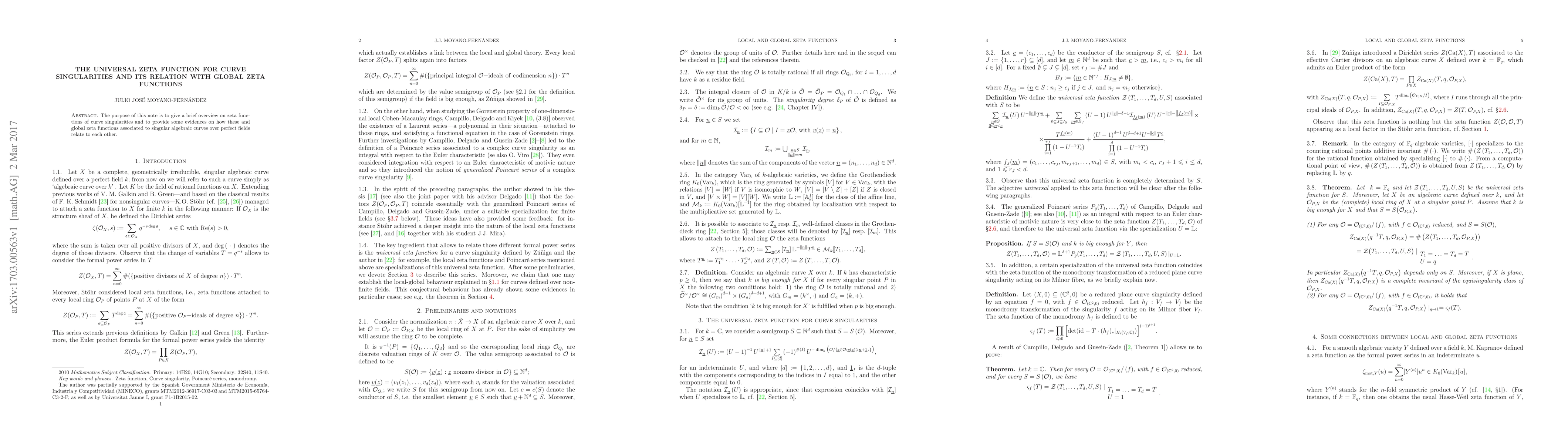 The purpose of this note is to give a brief overview on zeta functions of curve singularities and to provide some evidences on how these and global zeta functions associated to singular algebraic curves over perfect fields relate to each other.