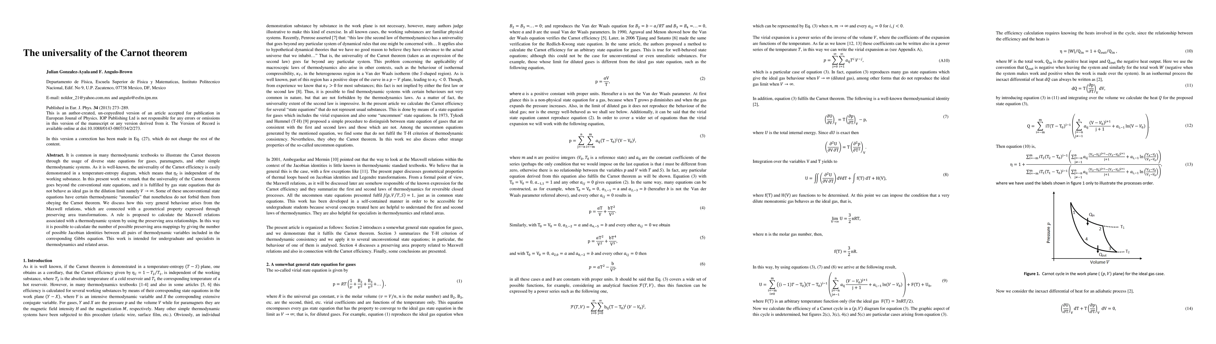 This paper explores the universality of the Carnot theorem beyond conventional state equations, demonstrating that it applies even to thermodynamic systems with anomalies. It proposes a method to calculate the Maxwell relations using preserving area transformations, highlighting the theorem's broad applicability.