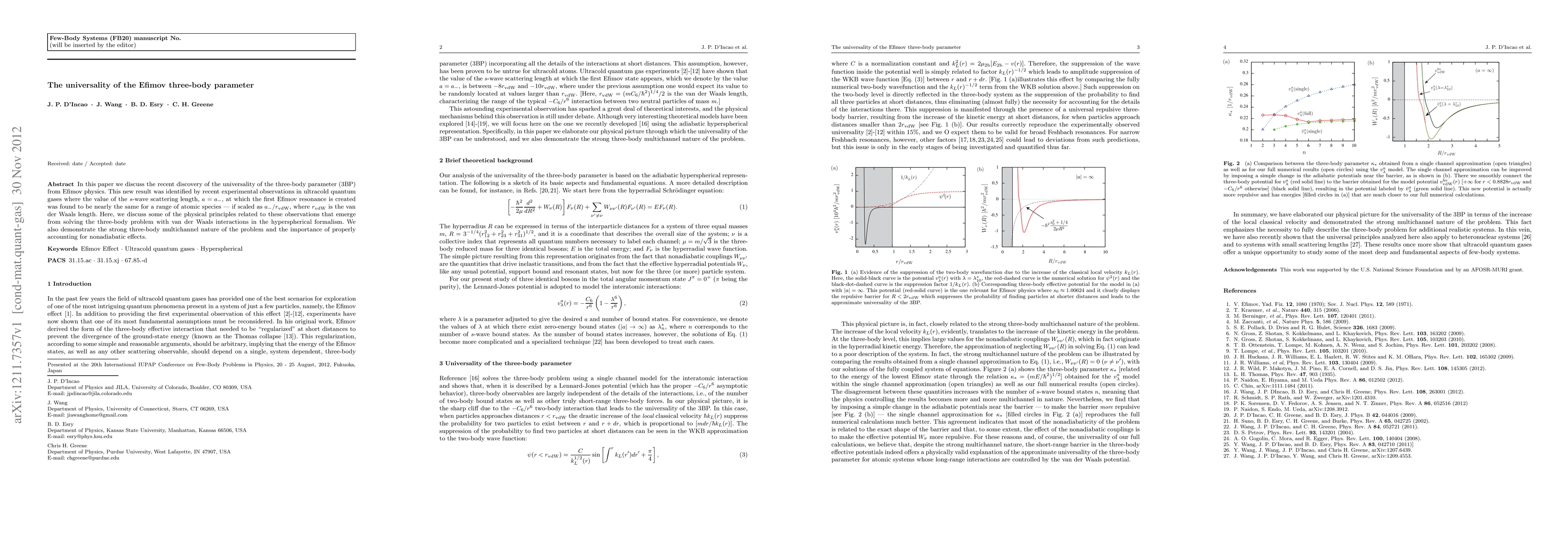 In this paper we discuss the recent discovery of the universality of the three-body parameter (3BP) from Efimov physics. This new result was identified by recent experimental observations in ultracold quantum gases where the value of the s-wave scattering length, $a=a_-$, at which the first Efimov resonance is created was found to be nearly the same for a range of atomic species --- if scaled as $a_-/r_{\rm vdW}$, where $r_{\rm vdW}$ is the van der Waals length. Here, we discuss some of the physical principles related to these observations that emerge from solving the three-body problem with van der Waals interactions in the hyperspherical formalism. We also demonstrate the strong three-body multichannel nature of the problem and the importance of properly accounting for nonadiabatic effects.