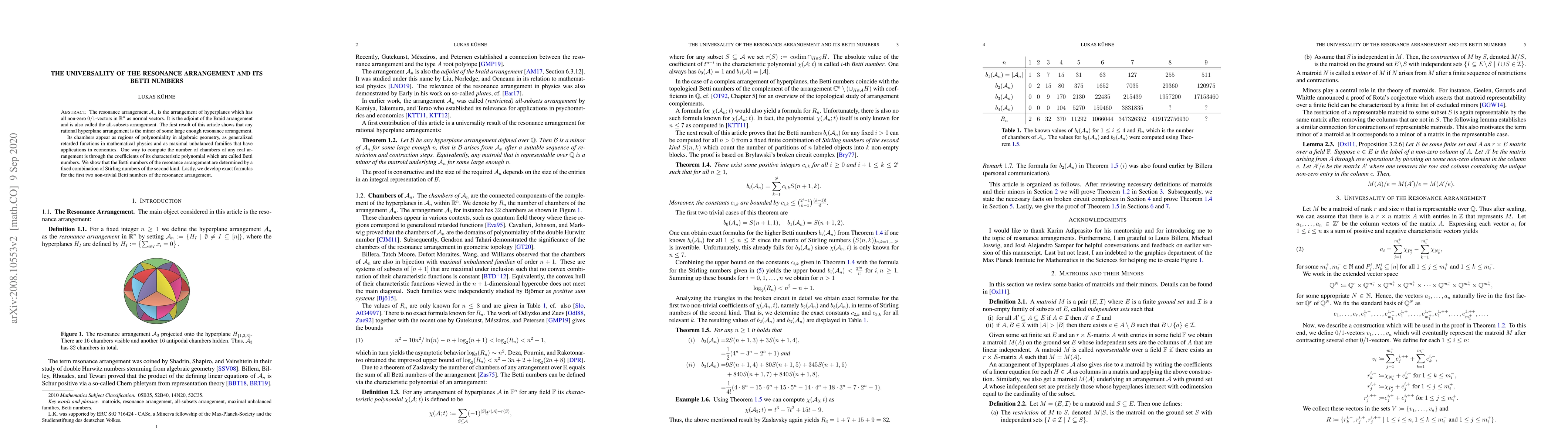 Researchers discovered that the Betti numbers of the resonance arrangement, a fundamental concept in algebraic geometry and mathematical physics, can be calculated using Stirling numbers of the second kind. This finding provides new insights into the properties of the resonance arrangement and its applications in various fields.