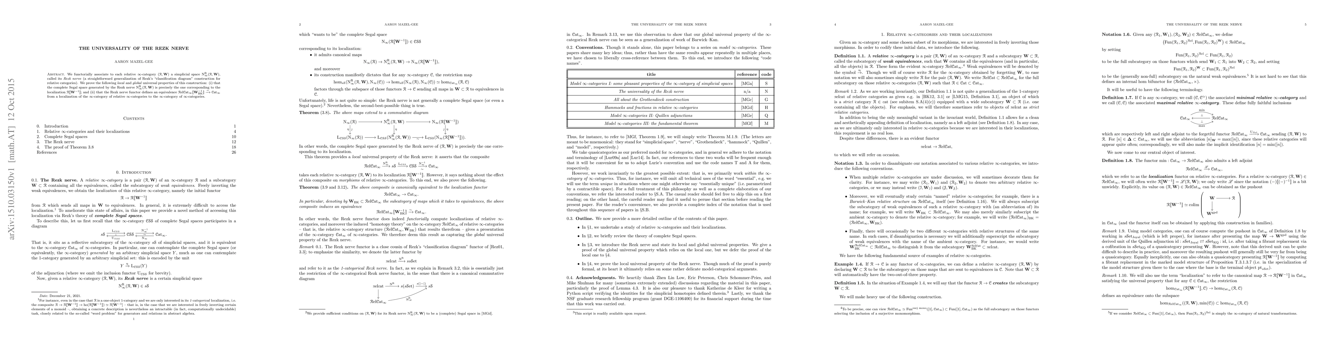 The paper introduces the Rezk nerve, a simplicial space associated with relative $\infty$-categories, and proves its universality in terms of localization and equivalence to $\infty$-categories. This construction facilitates a global equivalence between a localized category of relative $\infty$-categories and the category of $\infty$-categories.