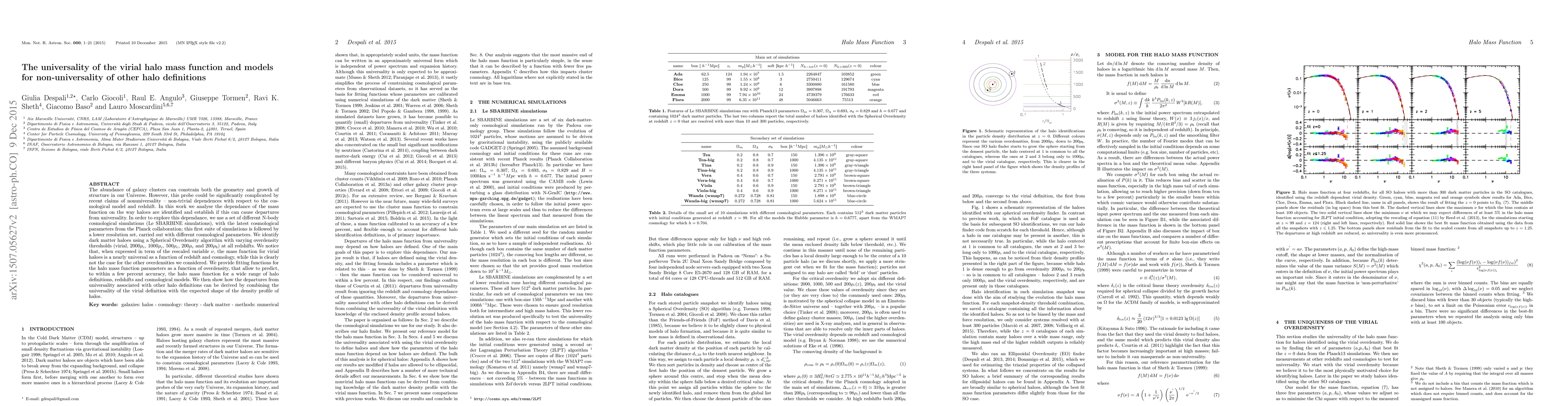 The abundance of galaxy clusters can constrain both the geometry and growth of structure in our Universe. However, this probe could be significantly complicated by recent claims of nonuniversality -- non-trivial dependences with respect to the cosmological model and redshift. In this work we analyse the dependance of the mass function on the way haloes are identified and establish if this can cause departures from universality. In order to explore this dependance, we use a set of different N-body cosmological simulations (Le SBARBINE simulations), with the latest cosmological parameters from the Planck collaboration; this first suite of simulations is followed by a lower resolution set, carried out with different cosmological parameters. We identify dark matter haloes using a Spherical Overdensity algorithm with varying overdensity thresholds (virial, 2000rho_c, 1000rho_c, 500rho_c, 200rho_c and 200rho_b) at all redshifts. We notice that, when expressed in term of the rescaled variable nu, the mass functionfor virial haloes is a nearly universal as a function of redshift and cosmology, while this is clearly not the case for the other overdensities we considered. We provide fitting functions for the halo mass function parameters as a function of overdensity, that allow to predict, to within a few percent accuracy, the halo mass function for a wide range of halo definitions, redshifts and cosmological models. We then show how the departures from universality associated with other halo definitions can be derived by combining the universality of the virial definition with the expected shape of the density profile of halos.