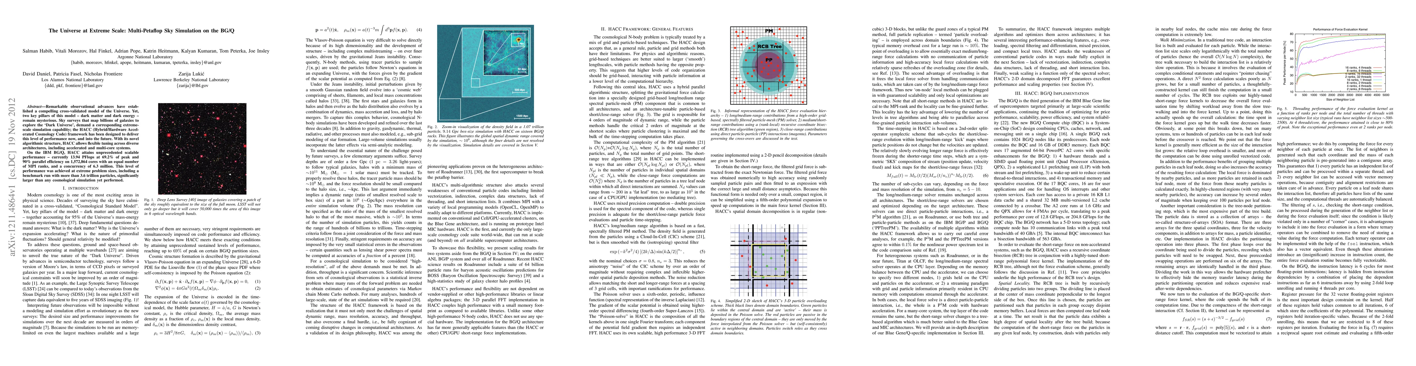 Remarkable observational advances have established a compelling cross-validated model of the Universe. Yet, two key pillars of this model -- dark matter and dark energy -- remain mysterious. Sky surveys that map billions of galaxies to explore the `Dark Universe', demand a corresponding extreme-scale simulation capability; the HACC (Hybrid/Hardware Accelerated Cosmology Code) framework has been designed to deliver this level of performance now, and into the future. With its novel algorithmic structure, HACC allows flexible tuning across diverse architectures, including accelerated and multi-core systems. On the IBM BG/Q, HACC attains unprecedented scalable performance -- currently 13.94 PFlops at 69.2% of peak and 90% parallel efficiency on 1,572,864 cores with an equal number of MPI ranks, and a concurrency of 6.3 million. This level of performance was achieved at extreme problem sizes, including a benchmark run with more than 3.6 trillion particles, significantly larger than any cosmological simulation yet performed.