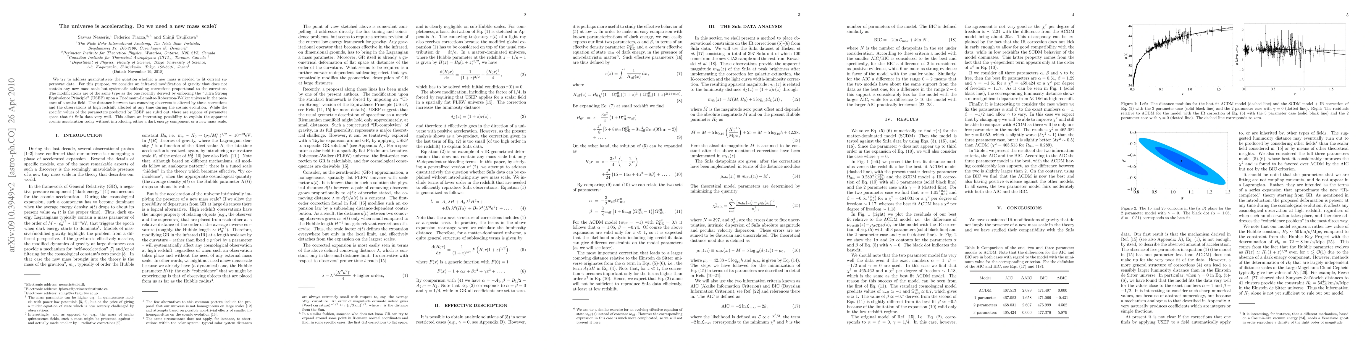 We try to address quantitatively the question whether a new mass is needed to fit current supernovae data. For this purpose, we consider an infra-red modification of gravity that does not contain any new mass scale but systematic subleading corrections proportional to the curvature. The modifications are of the same type as the one recently derived by enforcing the "Ultra Strong Equivalence Principle" (USEP) upon a Friedmann-Lemaitre-Robertson-Walker universe in the presence of a scalar field. The distance between two comoving observers is altered by these corrections and the observations at high redshift affected at any time during the cosmic evolution. While the specific values of the parameters predicted by USEP are ruled out, there are regions of parameter space that fit SnIa data very well. This allows an interesting possibility to explain the apparent cosmic acceleration today without introducing either a dark energy component or a new mass scale.