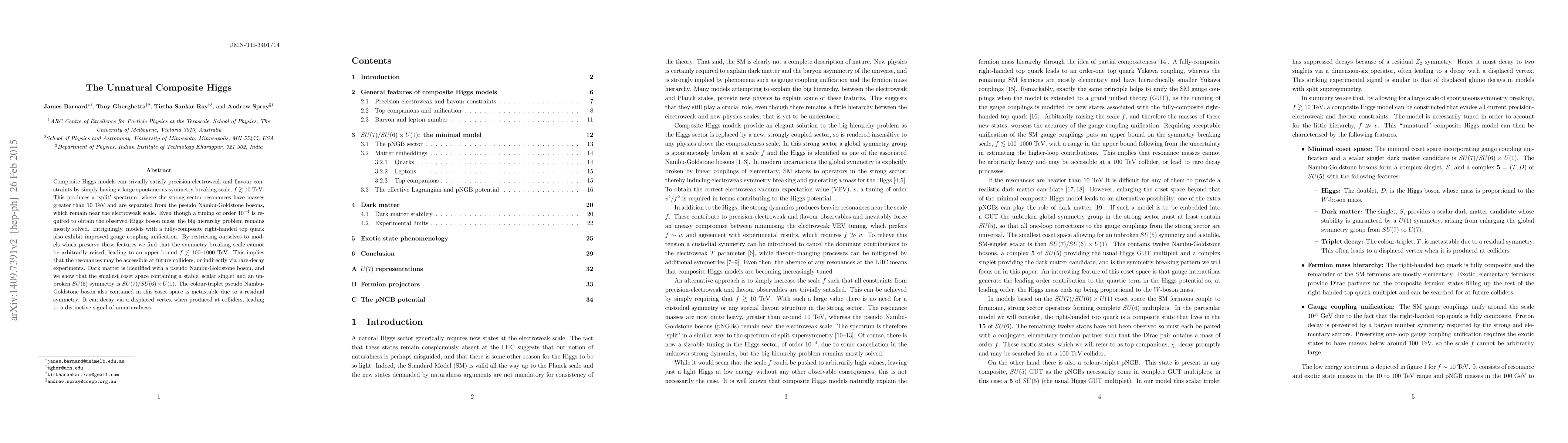 Composite Higgs models can trivially satisfy precision-electroweak and flavour constraints by simply having a large spontaneous symmetry breaking scale, f > 10 TeV. This produces a 'split' spectrum, where the strong sector resonances have masses greater than 10 TeV and are separated from the pseudo Nambu-Goldstone bosons, which remain near the electroweak scale. Even though a tuning of order 10^{-4} is required to obtain the observed Higgs boson mass, the big hierarchy problem remains mostly solved. Intriguingly, models with a fully-composite right-handed top quark also exhibit improved gauge coupling unification. By restricting ourselves to models which preserve these features we find that the symmetry breaking scale cannot be arbitrarily raised, leading to an upper bound f < 100-1000 TeV. This implies that the resonances may be accessible at future colliders, or indirectly via rare-decay experiments. Dark matter is identified with a pseudo Nambu-Goldstone boson, and we show that the smallest coset space containing a stable, scalar singlet and an unbroken SU(5) symmetry is SU(7) / SU(6) x U(1). The colour-triplet pseudo Nambu-Goldstone boson also contained in this coset space is metastable due to a residual symmetry. It can decay via a displaced vertex when produced at colliders, leading to a distinctive signal of unnaturalness.