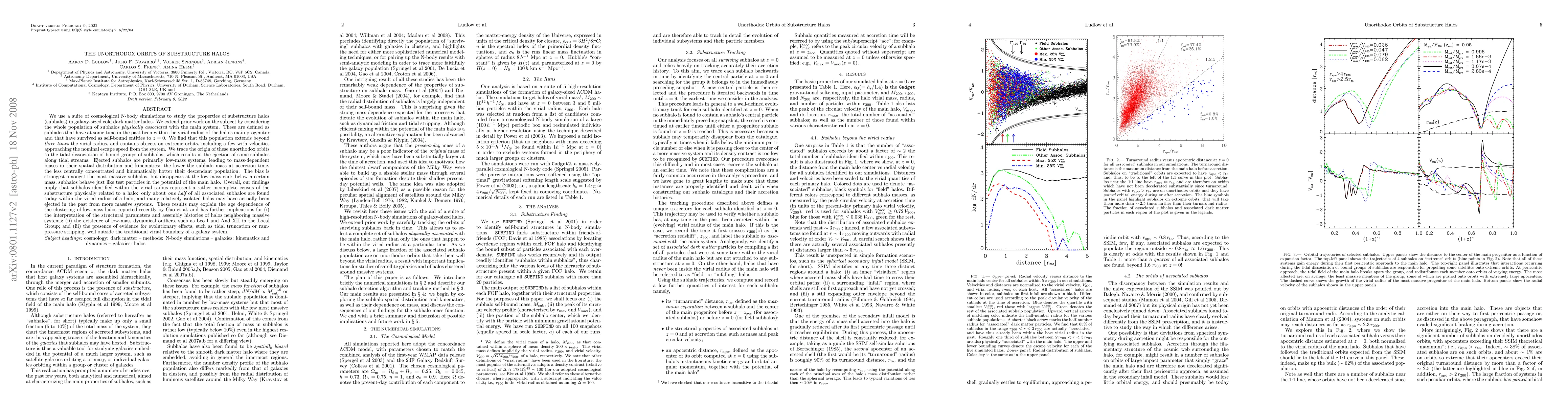 (Abridged) We use cosmological N-body simulations to study the properties of substructure halos in galaxy-sized dark matter halos. We extend prior work on the subject by considering the whole population of subhalos physically associated with the main system. These are defined as subhalos that have at some time in the past been within the virial radius of the halo's main progenitor and that have survived as self-bound entities to $z=0$. We find that this population extends beyond {\it three times} the virial radius, and contains objects on extreme orbits. We trace the origin of these unorthodox orbits to the tidal dissociation of bound groups of subhalos, which results in the ejection of some subhalos along tidal streams. Ejected subhalos are primarily low-mass systems, leading to mass-dependent biases in their spatial distribution and kinematics: the lower the subhalo mass at accretion time, the less centrally concentrated and kinematically hotter their descendant population. The bias is strongest amongst the most massive subhalos, but disappears at the low-mass end. Our findings imply that subhalos identified within the virial radius represent an incomplete census of the substructure physically related to a halo: only about {\it one half} of all associated subhalos are found today within the virial radius of a halo. These results may explain the age dependence of the clustering of low-mass halos, and has implications for (i) the interpretation of the structural parameters and assembly histories of halos neighboring massive systems; (ii) the existence of low-mass dynamical outliers in the Local Group; and (iii) the presence of evidence for evolutionary effects well outside the traditional virial boundary of a galaxy system.