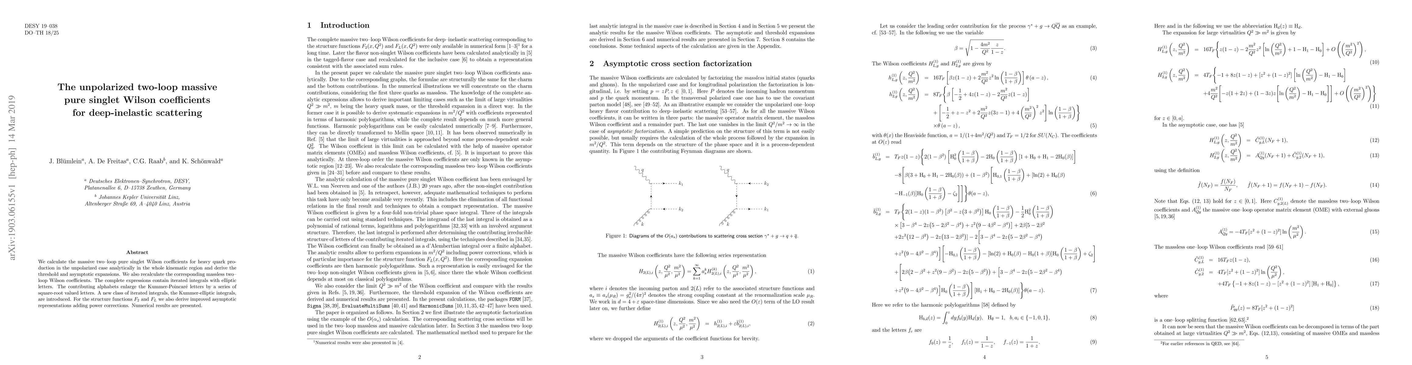 This paper analytically computes the massive two-loop pure singlet Wilson coefficients for unpolarized heavy quark production in deep-inelastic scattering, introducing new Kummer-elliptic integrals and iterated integrals with elliptic letters. Improved asymptotic representations for structure functions $F_2$ and $F_L$ are also derived, along with numerical results.