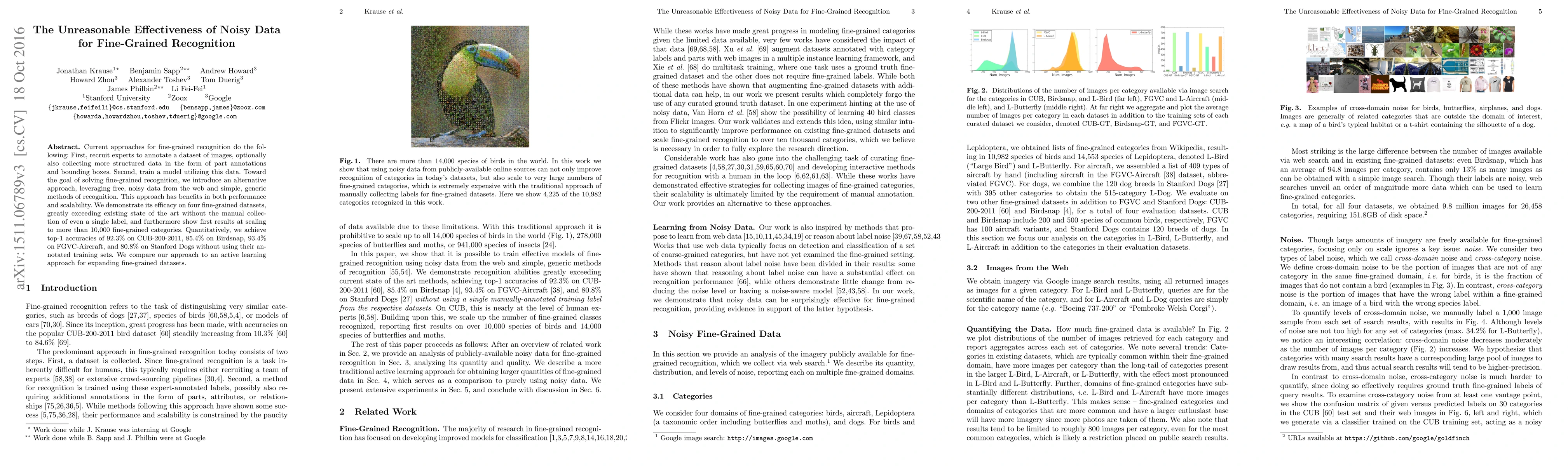 This paper proposes an alternative approach for fine-grained recognition using noisy, freely available web data instead of expert-annotated datasets, achieving state-of-the-art performance across multiple datasets without manual labeling. The method scales effectively to over 10,000 categories.