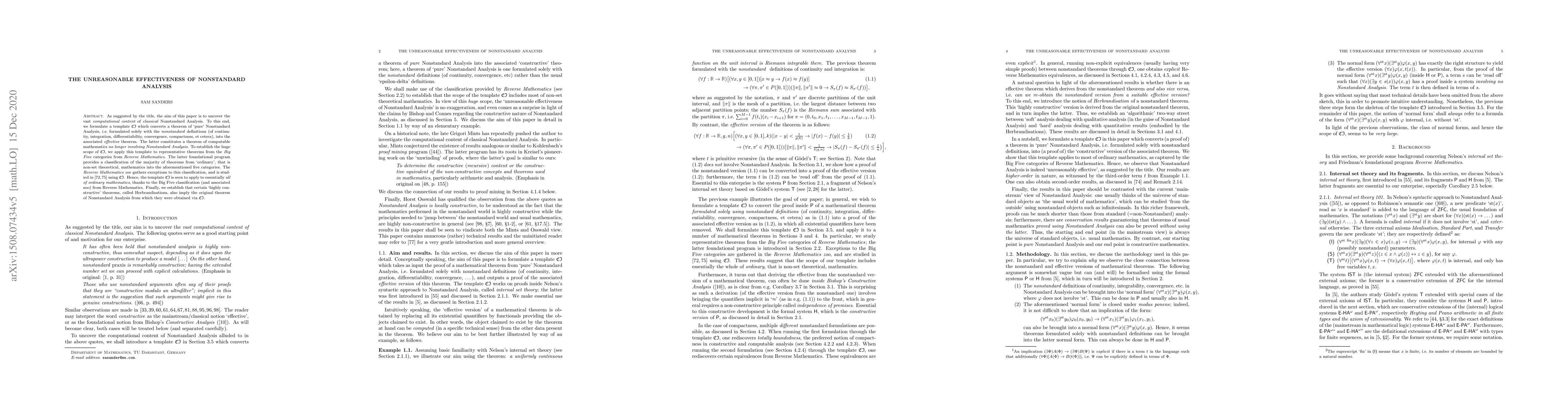 This research highlights the unreasonable effectiveness of Nonstandard Analysis by demonstrating its computational content and its ability to provide constructive proofs for a vast array of mathematical theorems.