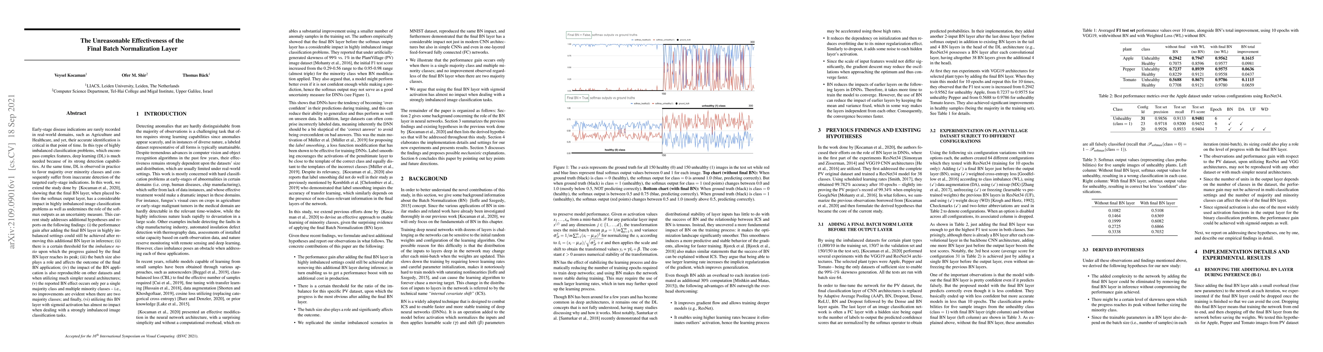 Researchers found that adding a final batch normalization layer improves performance in highly imbalanced image classification problems, but its impact decreases after removing it, suggesting a threshold for imbalance ratios.