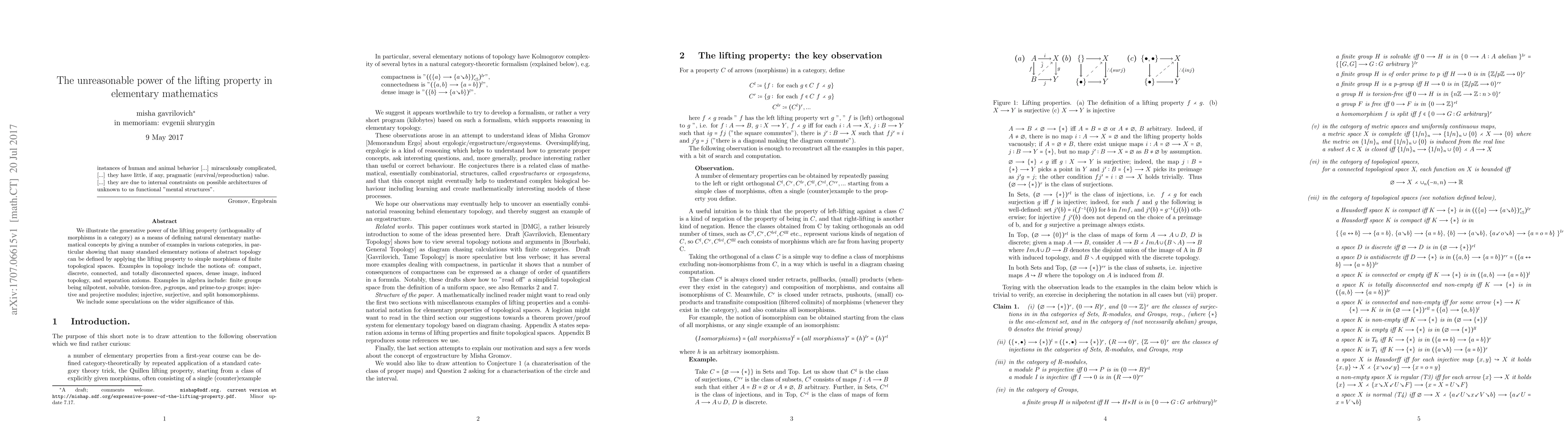 Researchers show how a mathematical concept called lifting property can define essential concepts in various fields like topology and algebra, revealing its power in creating natural elementary mathematical notions.