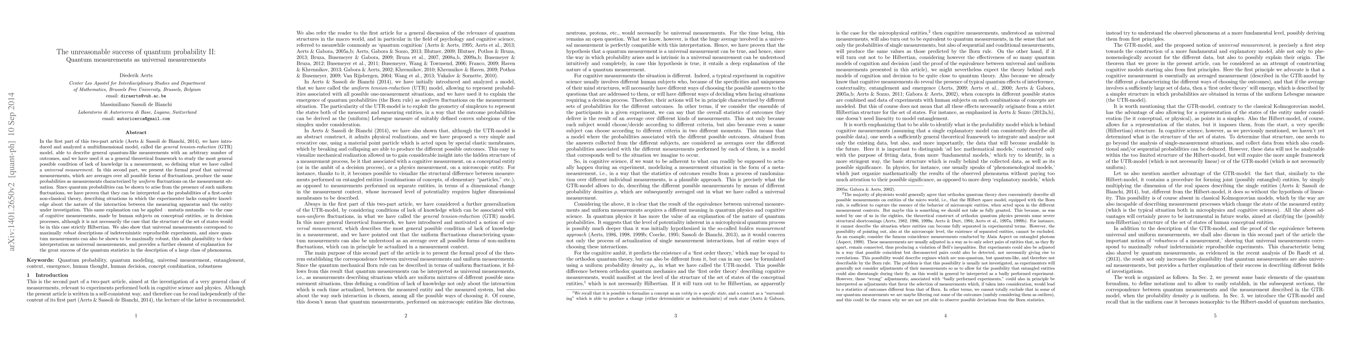 In the first part of this two-part article, we have introduced and analyzed a multidimensional model, called the 'general tension-reduction' (GTR) model, able to describe general quantum-like measurements with an arbitrary number of outcomes, and we have used it as a general theoretical framework to study the most general possible condition of lack of knowledge in a measurement, so defining what we have called a 'universal measurement'. In this second part, we present the formal proof that universal measurements, which are averages over all possible forms of fluctuations, produce the same probabilities as measurements characterized by 'uniform' fluctuations on the measurement situation. Since quantum probabilities can be shown to arise from the presence of such uniform fluctuations, we have proven that they can be interpreted as the probabilities of a first-order non-classical theory, describing situations in which the experimenter lacks complete knowledge about the nature of the interaction between the measuring apparatus and the entity under investigation. This same explanation can be applied -- mutatis mutandis -- to the case of cognitive measurements, made by human subjects on conceptual entities, or in decision processes, although it is not necessarily the case that the structure of the set of states would be in this case strictly Hilbertian. We also show that universal measurements correspond to maximally 'robust' descriptions of indeterministic reproducible experiments, and since quantum measurements can also be shown to be maximally robust, this adds plausibility to their interpretation as universal measurements, and provides a further element of explanation for the great success of the quantum statistics in the description of a large class of phenomena.
