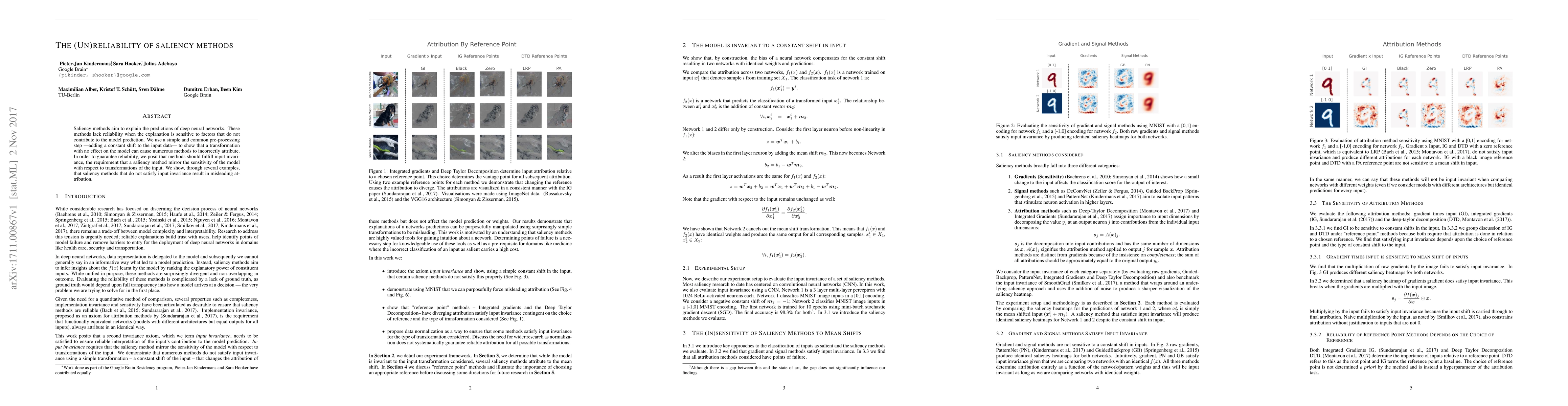 This paper examines the unreliability of saliency methods used to explain deep neural network predictions, demonstrating that these methods can incorrectly attribute importance due to factors irrelevant to the model's decision. It advocates for input invariance as a solution, showing that methods failing this criterion produce misleading explanations.