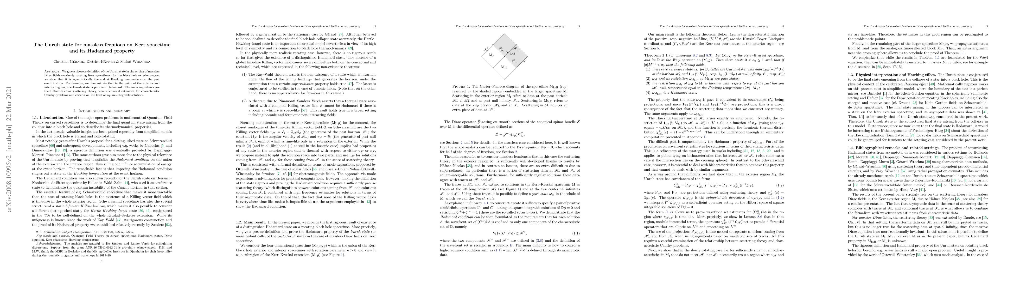 The Unruh state for massless fermions on Kerr spacetime is shown to be asymptotically thermal near the past event horizon, with additional properties demonstrated in both exterior and interior regions of the black hole.