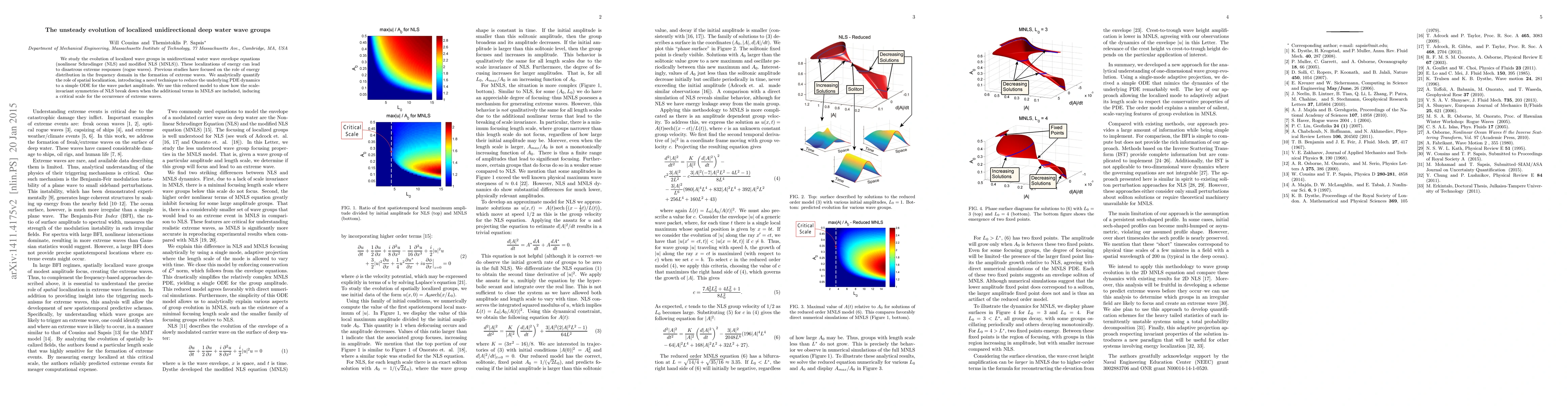 We study the evolution of localized wave groups in unidirectional water wave envelope equations (nonlinear Schrodinger (NLS) and modified NLS (MNLS)). These localizations of energy can lead to disastrous extreme responses (rogue waves). Previous studies have focused on the role of energy distribution in the frequency domain in the formation of extreme waves. We analytically quantify the role of spatial localization, introducing a novel technique to reduce the underlying PDE dynamics to a simple ODE for the wave packet amplitude. We use this reduced model to show how the scale- invariant symmetries of NLS break down when the additional terms in MNLS are included, inducing a critical scale for the occurrence of extreme waves.