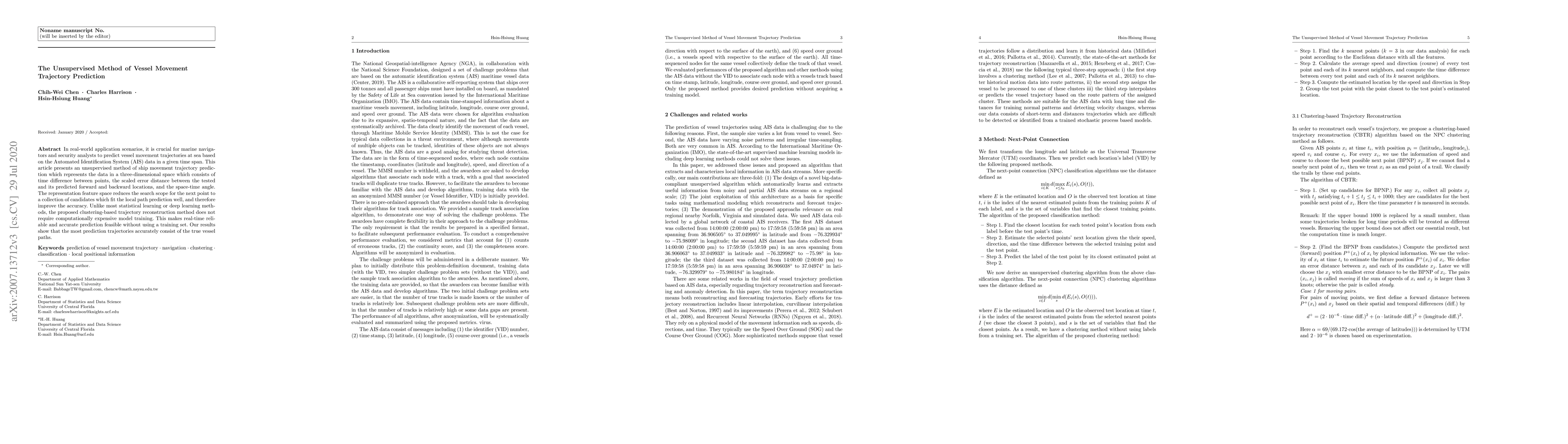 This paper proposes an unsupervised method for predicting vessel movement trajectories using AIS data, representing the data in a three-dimensional space to improve prediction accuracy. The clustering-based approach avoids computationally intensive model training, enabling real-time, accurate predictions without a training set.
