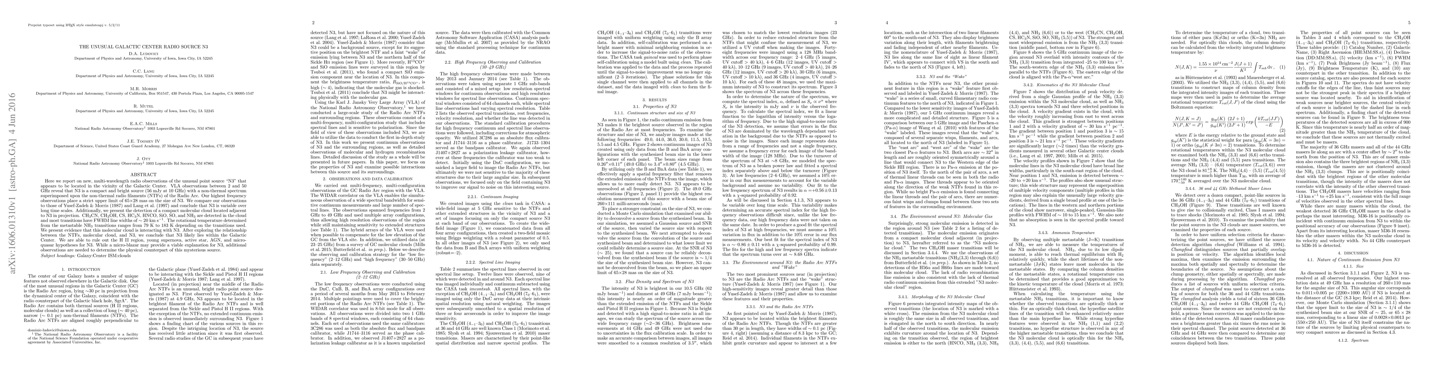 Here we report on new, multi-wavelength radio observations of the unusual point source "N3" that appears to be located in the vicinity of the Galactic Center. VLA observations between 2 and 50 GHz reveal that N3 is a compact and bright source (56 mJy at 10 GHz) with a non-thermal spectrum superimposed upon the non-thermal radio filaments (NTFs) of the Radio Arc. Our highest frequency observations place a strict upper limit of 65 x 28 mas on the size of N3. We compare our observations to those of Yusef-Zadeh & Morris (1987) and Lang et al. (1997) and conclude that N3 is variable over long time scales. Additionally, we present the detection of a compact molecular cloud located adjacent to N3 in projection. CH3CN, CH3OH, CS, HC3N, HNCO, SiO, SO, and NH3 are detected in the cloud and most transitions have FWHM line widths of ~20 km/s. The rotational temperature determined from the metastable NH3 transitions ranges from 79 K to 183 K depending on the transitions used. We present evidence that this molecular cloud is interacting with N3. After exploring the relationship between the NTFs, molecular cloud, and N3, we conclude that N3 likely lies within the Galactic Center. We are able to rule out the HII region, young supernova, active star, AGN, and micro-quasar hypotheses for N3. While a micro-blazar may provide a viable explanation for N3, additional observations are needed to determine the physical counterpart of this mysterious source.
