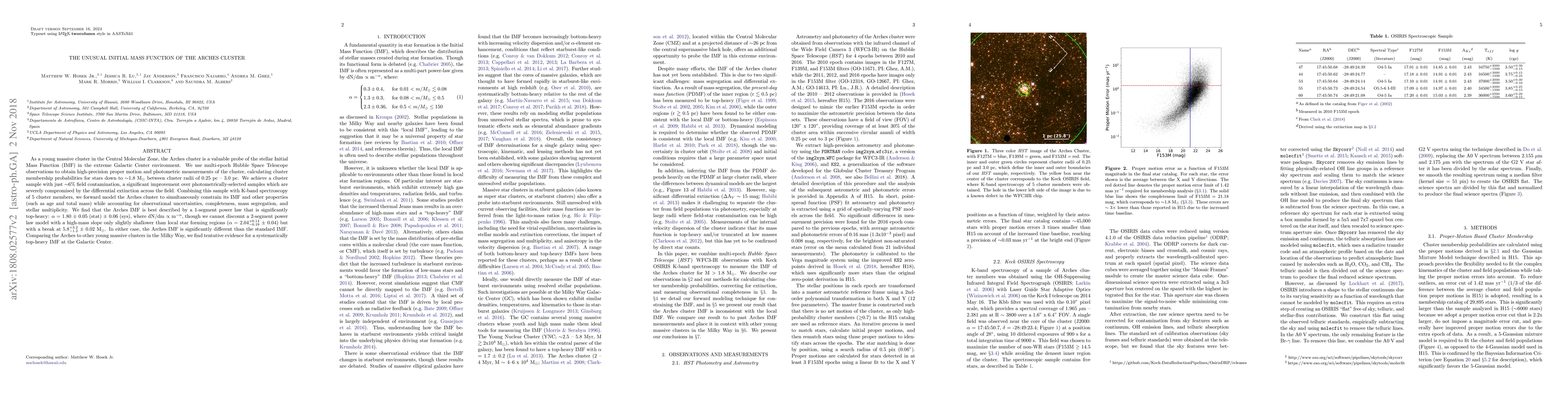 The Arches cluster, a young massive cluster in the Galactic Center, exhibits an unusual Initial Mass Function (IMF) that is significantly top-heavy compared to the standard IMF, suggesting a 1-segment power law with $\alpha$ = 1.80 $\pm$ 0.05. This finding indicates a potentially top-heavy IMF at the Galactic Center, differing from other young massive clusters in the Milky Way.