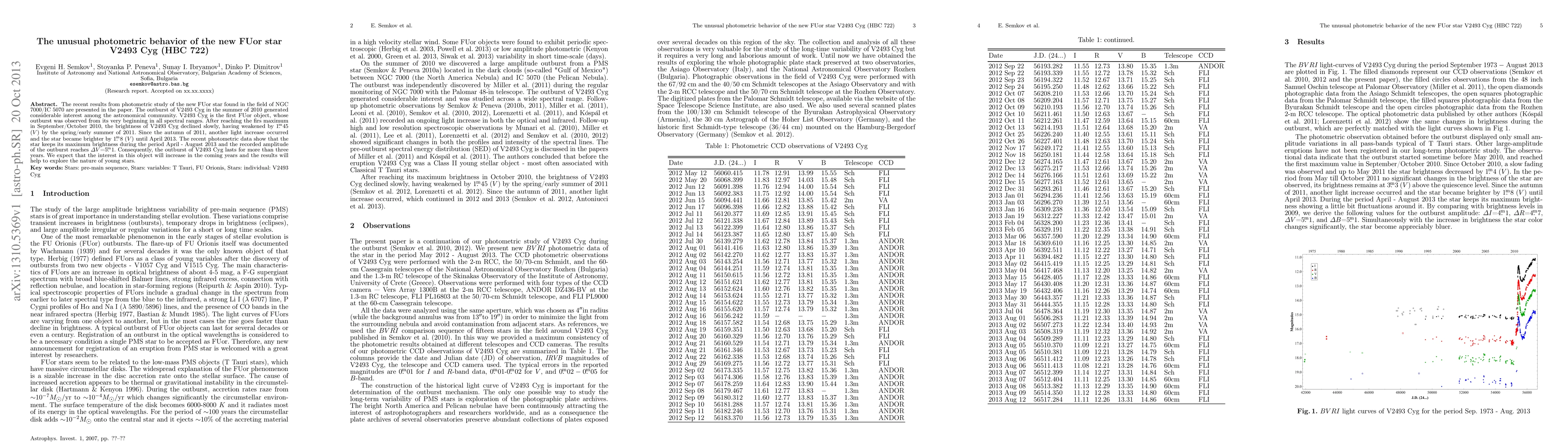 The recent results from photometric study of the new FUor star found in the field of NGC 7000/IC 5070 are presented in the paper. The outburst of V2493 Cyg in the summer of 2010 generated considerable interest among the astronomical community. V2493 Cyg is the first FUor object, whose outburst was observed from its very beginning in all spectral ranges. After reaching the firs maximum in September/October 2010, the brightness of V2493 Cyg declined slowly, having weakened by 1.45 mag. (V) by the spring/early summer of 2011. Since the autumn of 2011, another light increase occurred and the star became brighter by 1.8 mag. (V) until April 2013. The recent photometric data show that the star keeps its maximum brightness during the period April - August 2013 and the recorded amplitude of the outburst reaches Delta V=5.1 mag. Consequently, the outburst of V2493 Cyg lasts for more than three years. We expect that the interest in this object will increase in the coming years and the results will help to explore the nature of young stars.