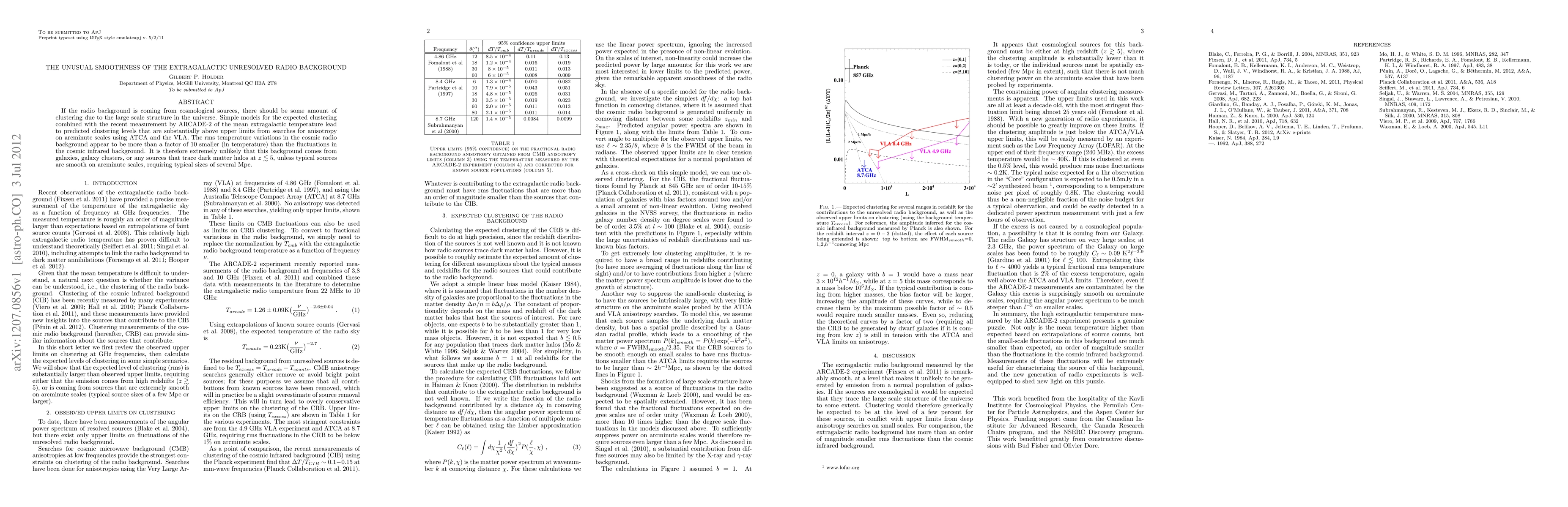 The cosmic radio background shows unusual smoothness due to predicted clustering levels exceeding upper limits from previous searches, suggesting that typical sources may be smooth on arcminute scales.