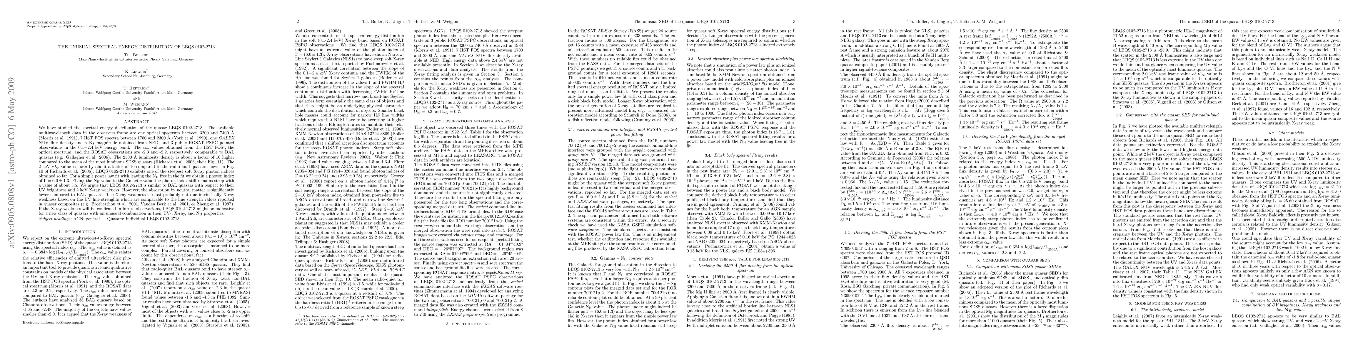 This study investigates the spectral energy distribution (SED) of the quasar LBQS 0102-2713, revealing an unusual combination of UV, X-ray, and hydrogen column density properties, suggesting it may represent a new class of quasars. The alpha_ox values and high 2500 A luminosity density indicate distinct characteristics compared to typical quasars.