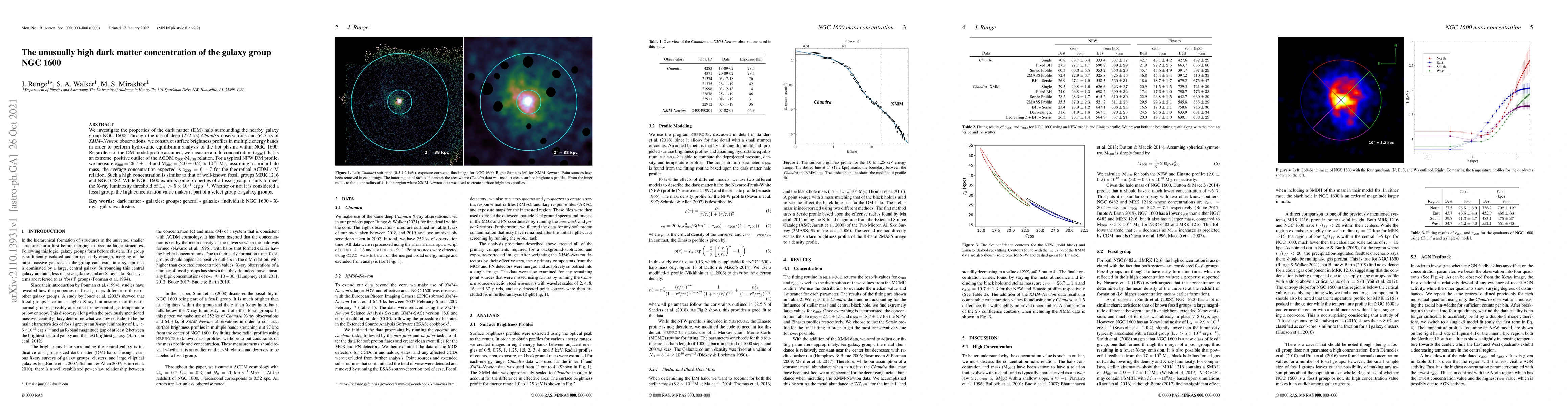 We investigate the properties of the dark matter (DM) halo surrounding the nearby galaxy group NGC 1600. Through the use of deep (252 ks) Chandra observations and 64.3 ks of XMM-Newton observations, we construct surface brightness profiles in multiple energy bands in order to perform hydrostatic equilibrium analysis of the hot plasma within NGC 1600. Regardless of the DM model profile assumed, we measure a halo concentration (c$_{200}$) that is an extreme, positive outlier of the $\Lambda$CDM c$_{200}$-M$_{200}$ relation. For a typical NFW DM profile, we measure c$_{200}\!=\!26.7\pm1.4$ and M$_{200}\!=\!(2.0\pm0.2)\times10^{13}$ M$_\odot$; assuming a similar halo mass, the average concentration expected is c$_{200}=6-7$ for the theoretical $\Lambda$CDM c-M relation. Such a high concentration is similar to that of well-known fossil groups MRK 1216 and NGC 6482. While NGC 1600 exhibits some properties of a fossil group, it fails to meet the X-ray luminosity threshold of L$_X>5\times10^{41}$ erg s$^{-1}$. Whether or not it is considered a fossil group, the high concentration value makes it part of a select group of galaxy groups.