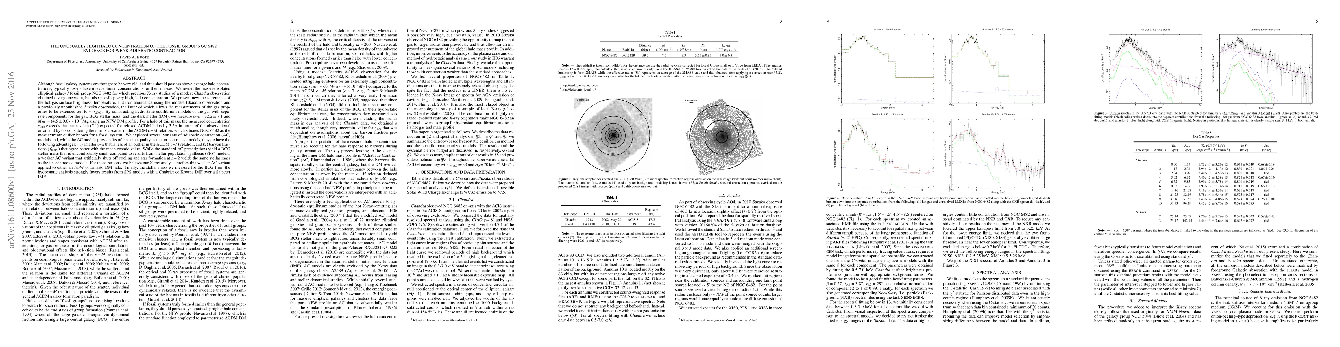 We revisit the massive isolated elliptical galaxy / fossil group NGC 6482 for which previous X-ray studies of a modest Chandra observation obtained a very uncertain, but also possibly very high, halo concentration. We present new measurements of the hot gas surface brightness, temperature, and iron abundance using the modest Chandra observation and a previously unpublished Suzaku observation, the latter of which allows measurements of the gas properties to be extended out to ~r_2500. By constructing hydrostatic equilibrium models of the gas with separate components for the gas, BCG stellar mass, and the dark matter (DM), we measure c_200 = 32.2 +/- 7.1 and M_200 = (4.5 +/- 0.6 x 10^12 M_sun using an NFW DM profile. For a halo of this mass, c_200 exceeds the mean value (7.1) expected for relaxed LCDM halos by $3.5 \sigma$ in terms of the observational error, and by $6 \sigma$ considering the intrinsic scatter in the LCDM c-M relation, which situates NGC 6482 as the most extreme outlier known for a fossil system. We explored several variants of adiabatic contraction (AC) models and, while the AC models provide fits of the same quality as the un-contracted models, they do have the following advantages: (1) smaller c_200 that is less of an outlier in the LCDM c-M relation, and (2) baryon fractions that agree better with the mean cosmic value. While the standard AC prescriptions yield a BCG stellar mass that is uncomfortably small compared to results from stellar population synthesis (SPS) models, a weaker AC variant that artificially shuts off cooling and star formation at z=2 yields the same stellar mass as the un-contracted models. For these reasons, we believe our X-ray analysis prefers this weaker AC variant applied to either an NFW or Einasto DM halo. Finally, the BCG stellar mass strongly favors SPS models with a Chabrier or Kroupa IMF over a Salpeter IMF. (Abridged)