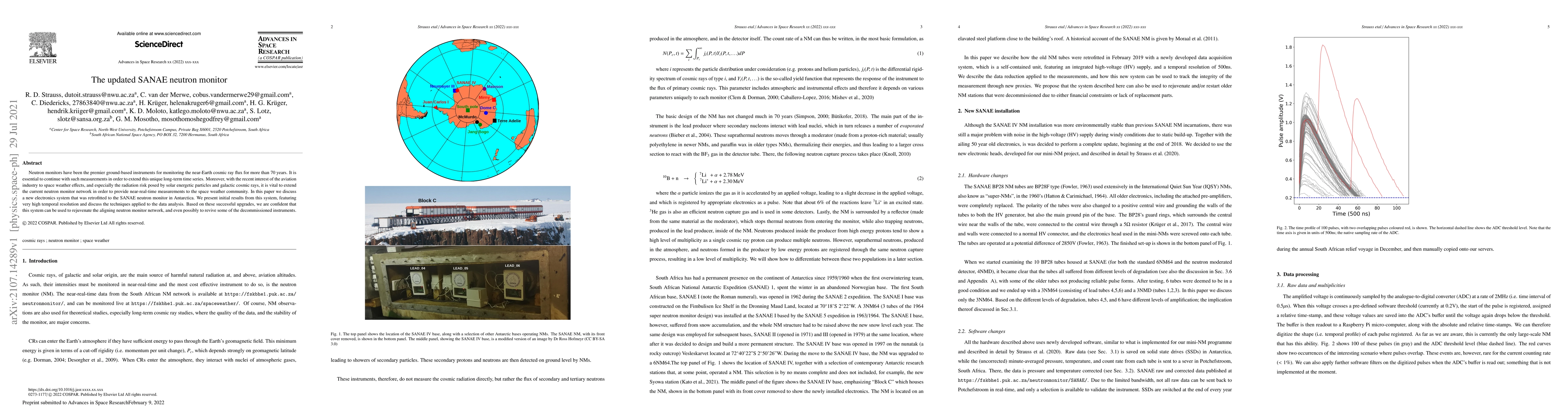 A new electronics system has been retrofitted to the SANAE neutron monitor in Antarctica, enabling high temporal resolution measurements that can support near-real-time monitoring of space weather effects and radiation risks.