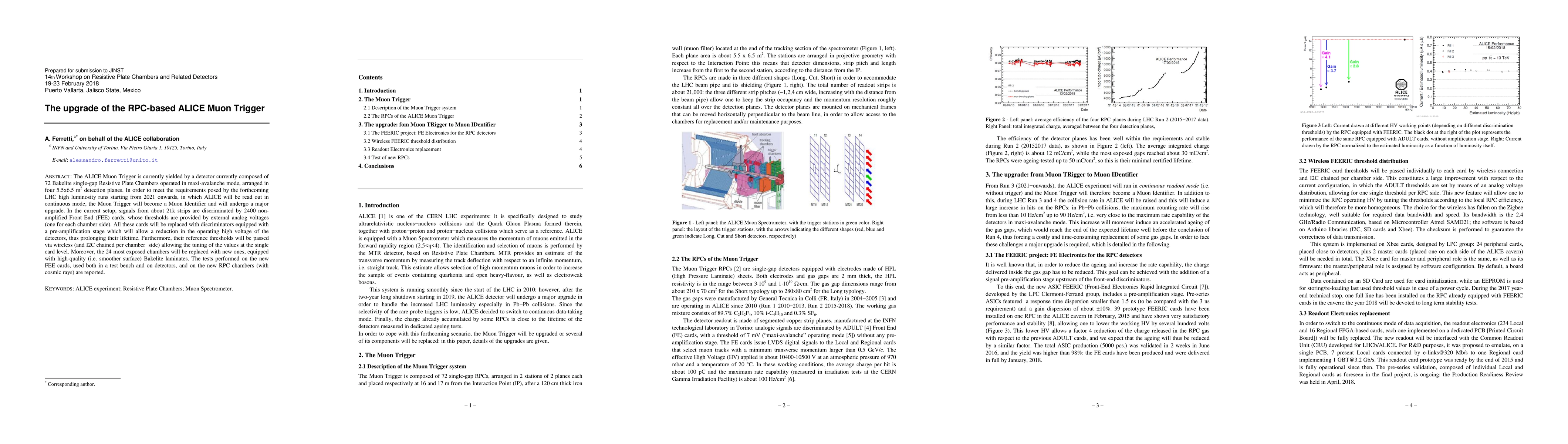 The ALICE Muon Trigger is currently yielded by a detector currently composed of 72 Bakelite single-gap Resistive Plate Chambers operated in maxi-avalanche mode, arranged in four 5.5x6.5 m2 detection planes. In order to meet the requirements posed by the forthcoming LHC high luminosity runs starting from 2021 onwards, in which ALICE will be read out in continuous mode, the Muon Trigger will become a Muon Identifier and will undergo a major upgrade. In the current setup, signals from about 21k strips are discriminated by 2400 non-amplified Front End (FEE) cards, whose thresholds are provided by external analog voltages (one for each chamber side). All these cards will be replaced with discriminators equipped with a pre-amplification stage which will allow a reduction in the operating high voltage of the detectors, thus prolonging their lifetime. Furthermore, their reference thresholds will be passed via wireless (and I2C chained per chamber side) allowing the tuning of the values at the single card level. Moreover, the 24 most exposed chambers will be replaced with new ones, equipped with high-quality (i.e. smoother surface) Bakelite laminates. The tests performed on the new FEE cards, used both in a test bench and on detectors, and on the new RPC chambers (with cosmic rays) are reported.