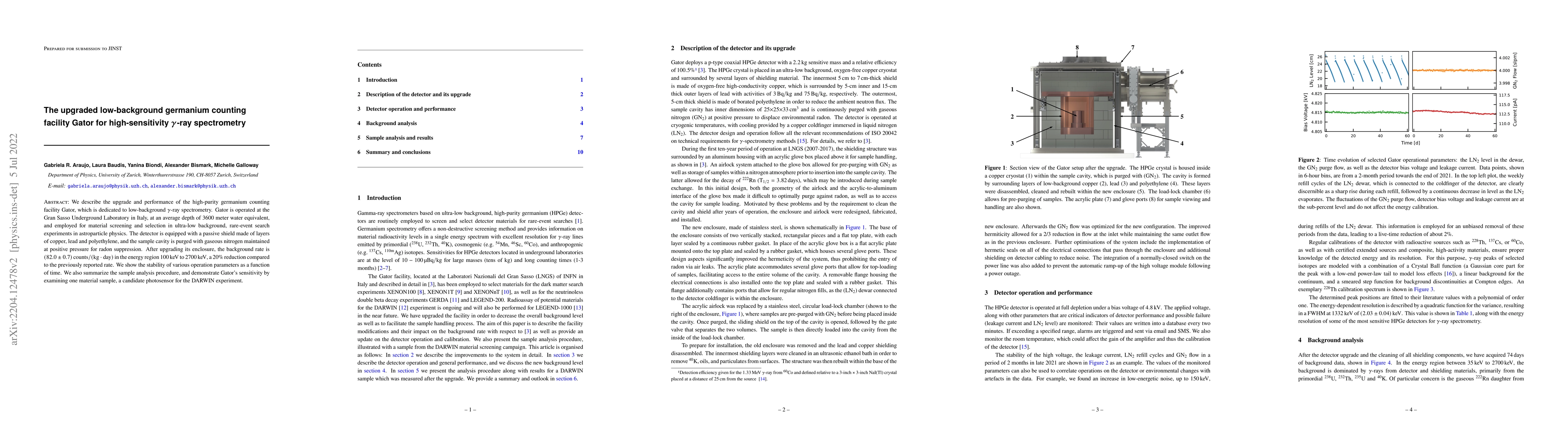 The Gator facility, upgraded for low-background $\gamma$-ray spectrometry, now operates at a reduced background rate of 82.0±0.7 counts/(kg·day) in the 100 keV to 2700 keV range, enhancing its utility in ultra-low background, rare-event search experiments in astroparticle physics. The facility's stability and sensitivity are demonstrated through the analysis of a candidate photosensor material for the DARWIN experiment.