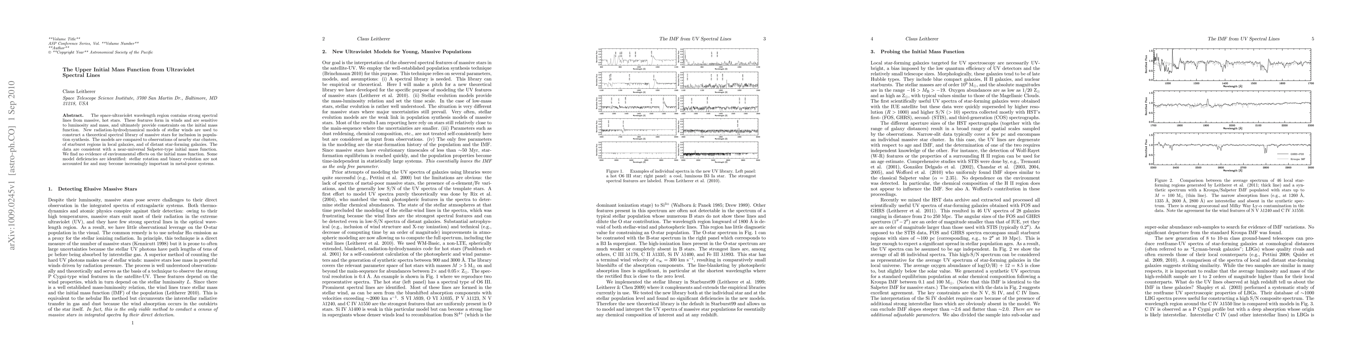 The space-ultraviolet wavelength region contains strong spectral lines from massive, hot stars. These features form in winds and are sensitive to luminosity and mass, and ultimately provide constraints on the initial mass function. New radiation-hydrodynamical models of stellar winds are used to construct a theoretical spectral library of massive stars for inclusion in population synthesis. The models are compared to observations of nearby star clusters, of starburst regions in local galaxies, and of distant star-forming galaxies. The data are consistent with a near-universal Salpeter-type initial mass function. We find no evidence of environmental effects on the initial mass function. Some model deficiencies are identified: stellar rotation and binary evolution are not accounted for and may become increasingly important in metal-poor systems.