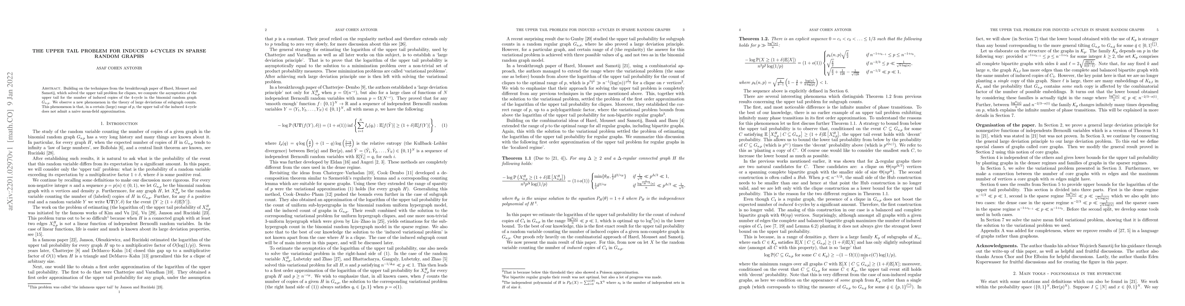 This paper extends the upper tail problem for cliques to induced 4-cycles in sparse random graphs, revealing a new phenomenon where the upper tail does not follow a simple mean-field approximation in a specific range of edge probabilities $p$. The findings provide insights into the large deviations of subgraph counts.