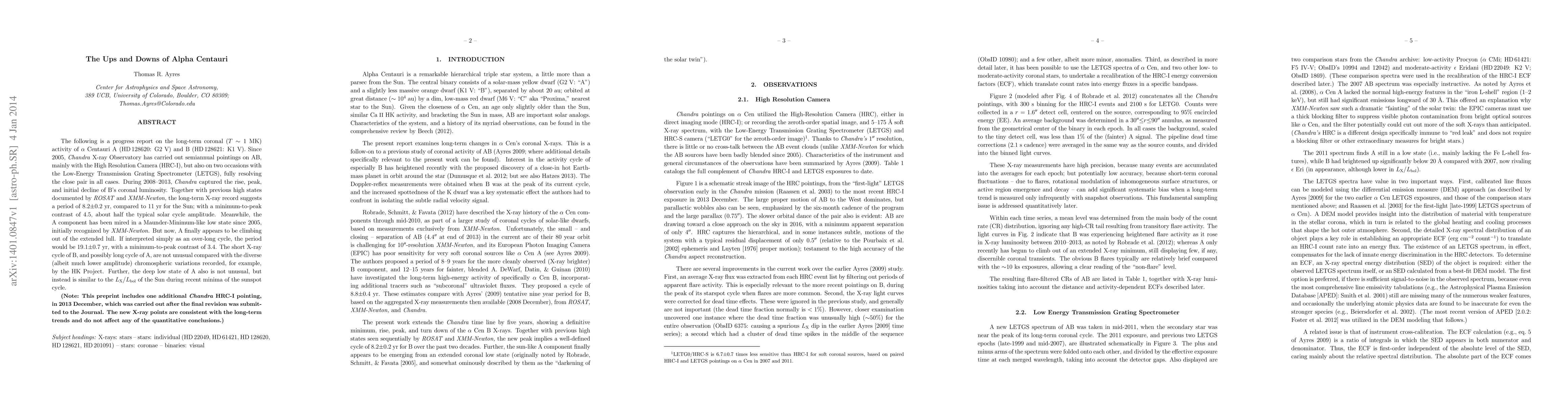 The following is a progress report on the long-term coronal activity of Alpha Centauri A (HD128620: G2V) and B (HD128621: K1V). Since 2005, Chandra X-ray Observatory has carried out semiannual pointings on AB, mainly with the High Resolution Camera (HRC-I), but also on two occasions with the Low-Energy Transmission Grating Spectrometer (LETGS), fully resolving the close pair in all cases. During 2008-2013, Chandra captured the rise, peak, and initial decline of B's coronal luminosity. Together with previous high states documented by ROSAT and XMM-Newton, the long-term X-ray record suggests a period of 8.2+/-0.2 yr, compared to 11 yr for the Sun; with a minimum-to-peak contrast of 4.5, about half the typical solar cycle amplitude. Meanwhile, the A component has been mired in a Maunder-Minimum-like low state since 2005, initially recognized by XMM. But now, A finally appears to be climbing out of the extended lull. If interpreted simply as an over-long cycle, the period would be 19.1+/-0.7 yr, with a minimum-to-peak contrast of 3.4. The short X-ray cycle of B, and possibly long cycle of A, are not unusual compared with the diverse (albeit much lower amplitude) chromospheric variations recorded, for example, by the HK Project. Further, the deep low state of A also is not unusual, but instead is similar to the Sun during recent minima of the sunspot cycle.