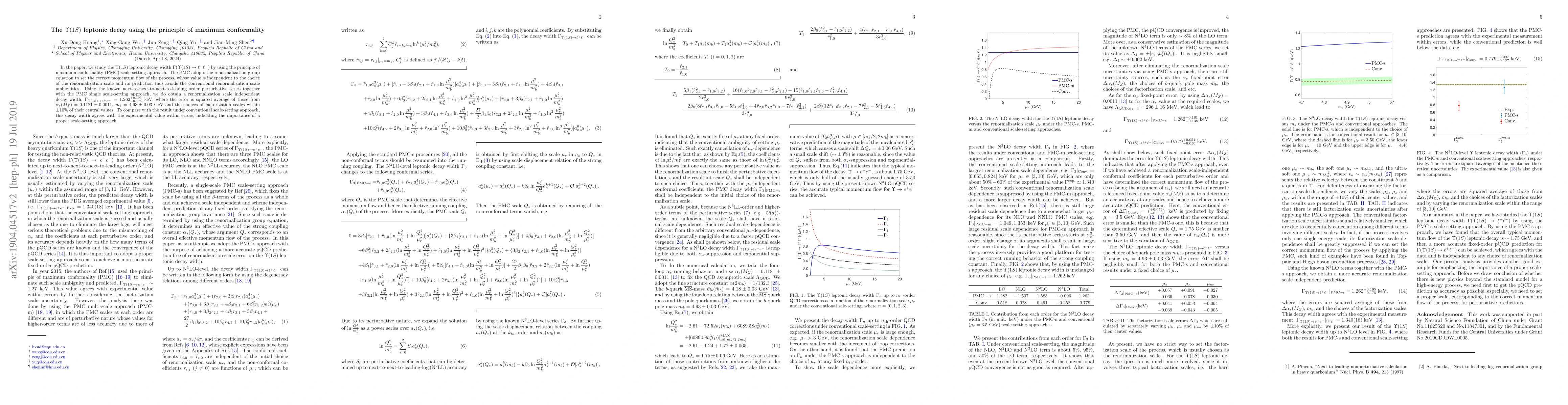This paper investigates the leptonic decay width of $\Upsilon(1S)$ using the principle of maximum conformality (PMC) to set the renormalization scale, achieving a scale-independent prediction. The PMC approach yields a decay width of $\Gamma_{\Upsilon(1S) \to e^+ e^-} = 1.262^{+0.195}_{-0.175}$ keV, which agrees with experimental values, highlighting the effectiveness of PMC over conventional methods.